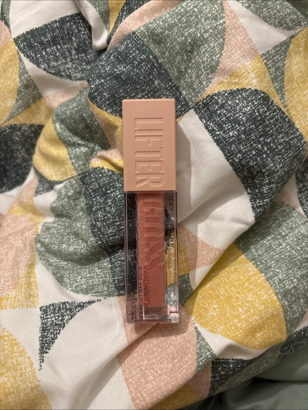 A clear lip gloss. It features a light pink cap. I'm sure you'll agree that the application of this product is a true self-care moment.