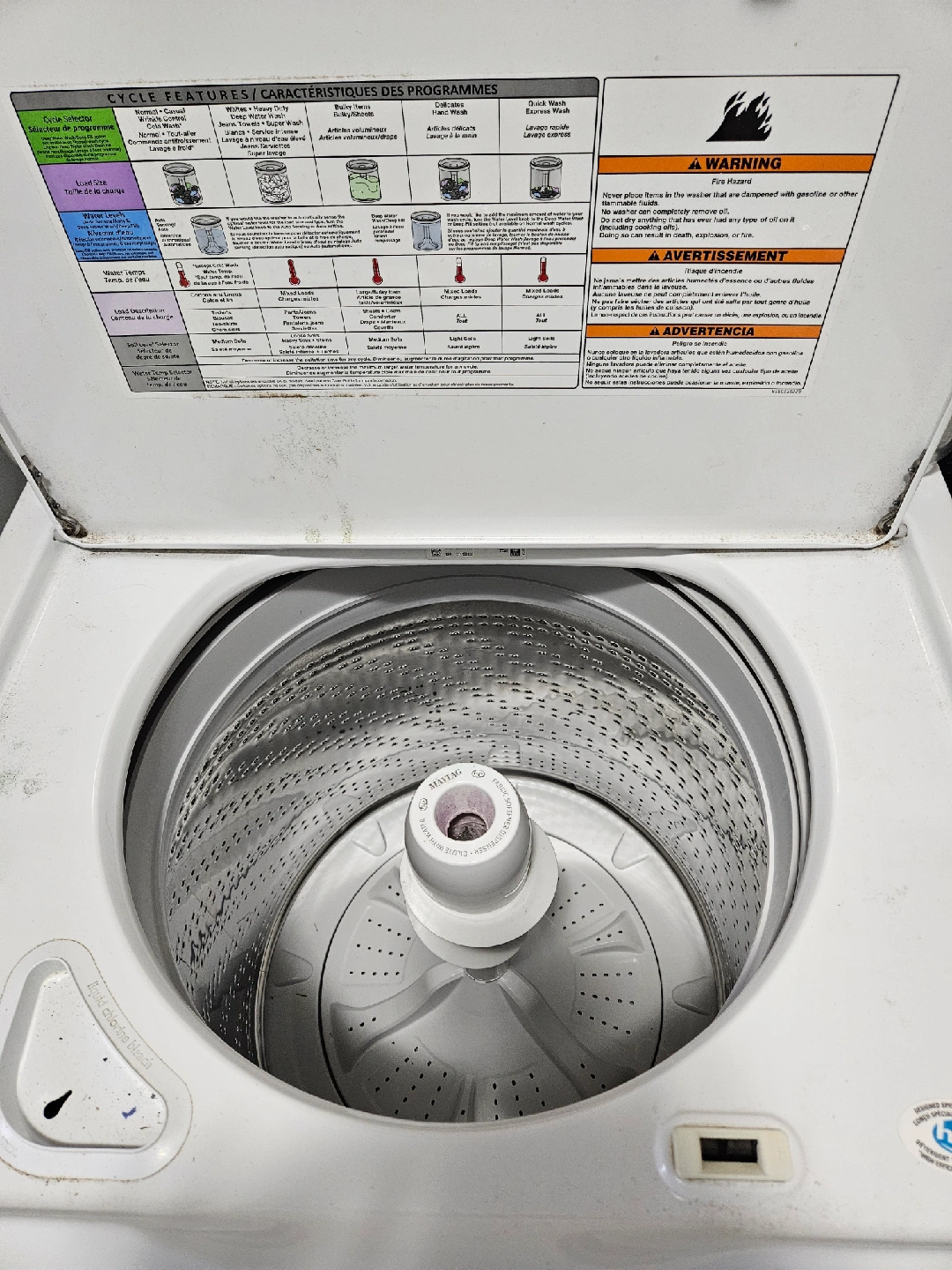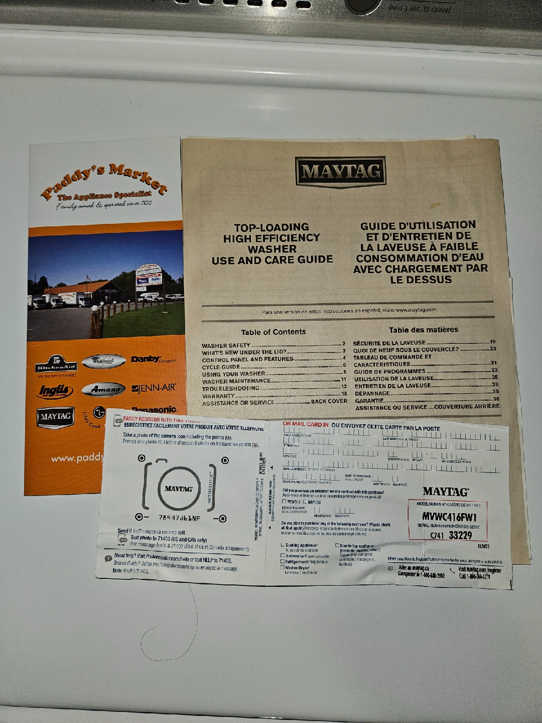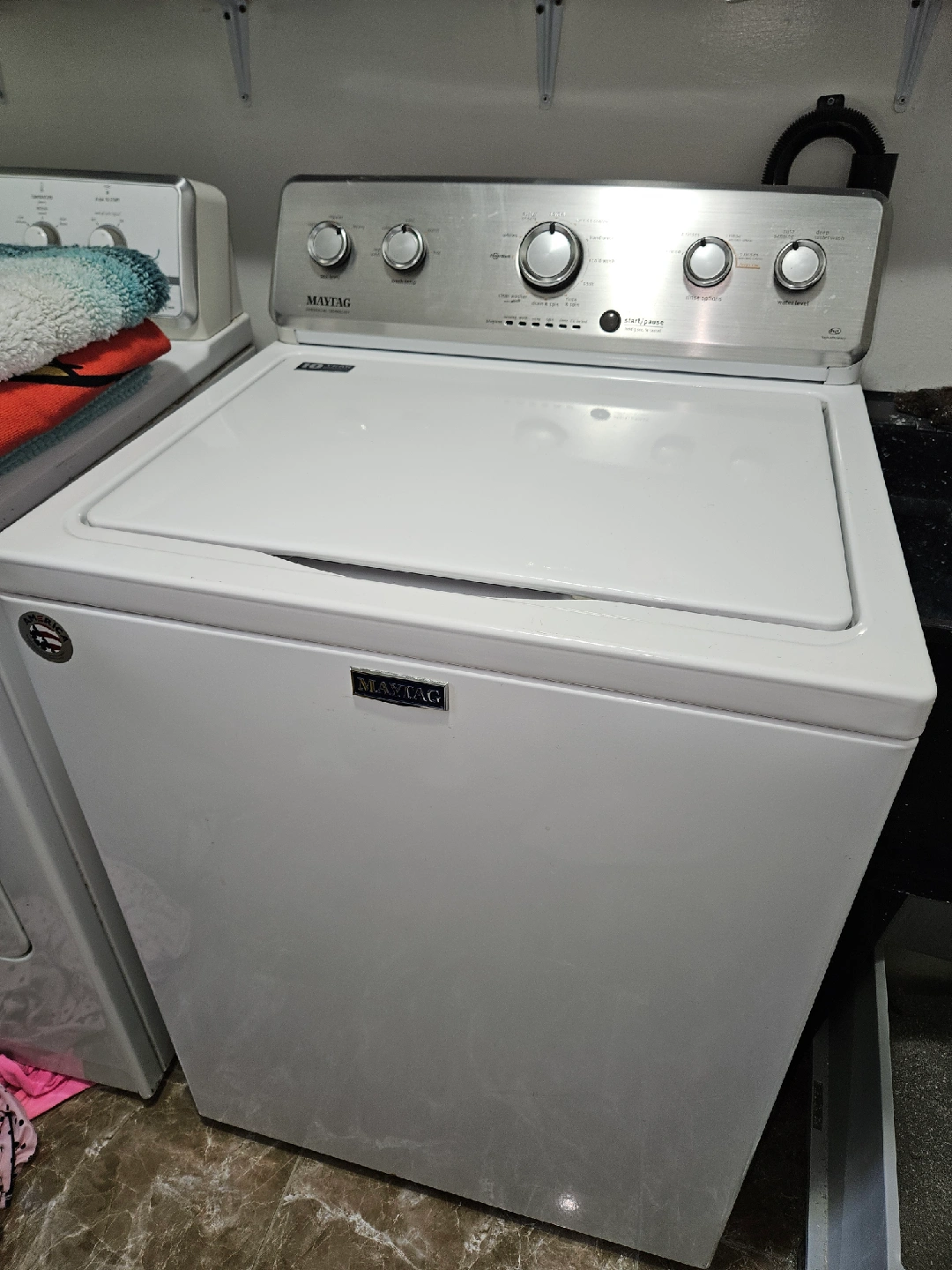 127Selling a Maytag top-loading high-efficiency washer. The model number is MVWC416FW1 and serial number C741 33229. Believed to be 2017 model, in like new condition. Comes with the use and care guide. • This is a 28-inch Top Load Washer with a 3.6 Cu. ft, capacity (or 4.2 cu. ft. IEC capacity), . featuring a Power Wash Agitator. • It comes with 11 wash cycles and 5 temperature settings, including a Deep Water Wash option and a Deep Rinse option. . The washer has a stainless steel wash basket and is designed for residential Use.