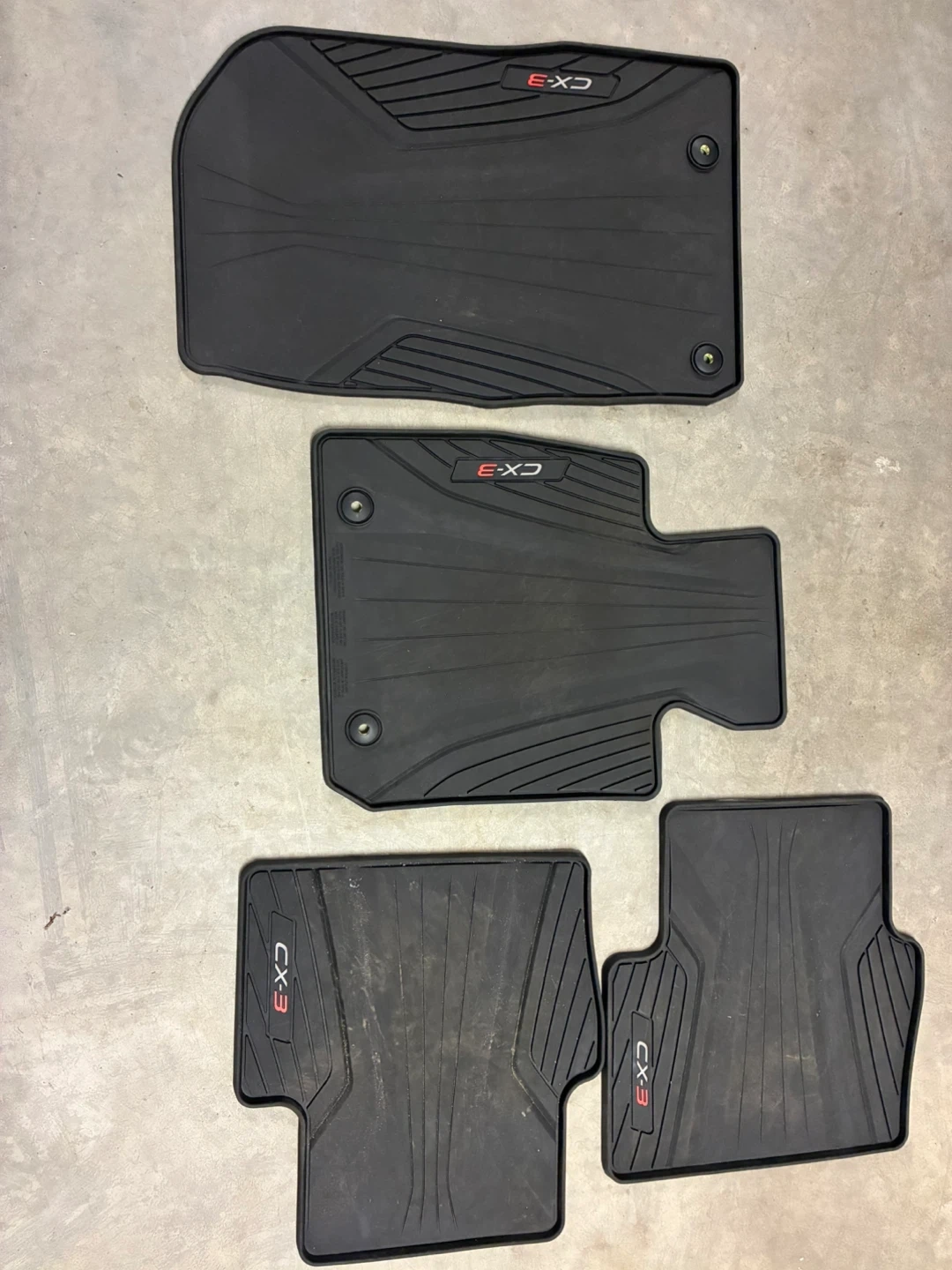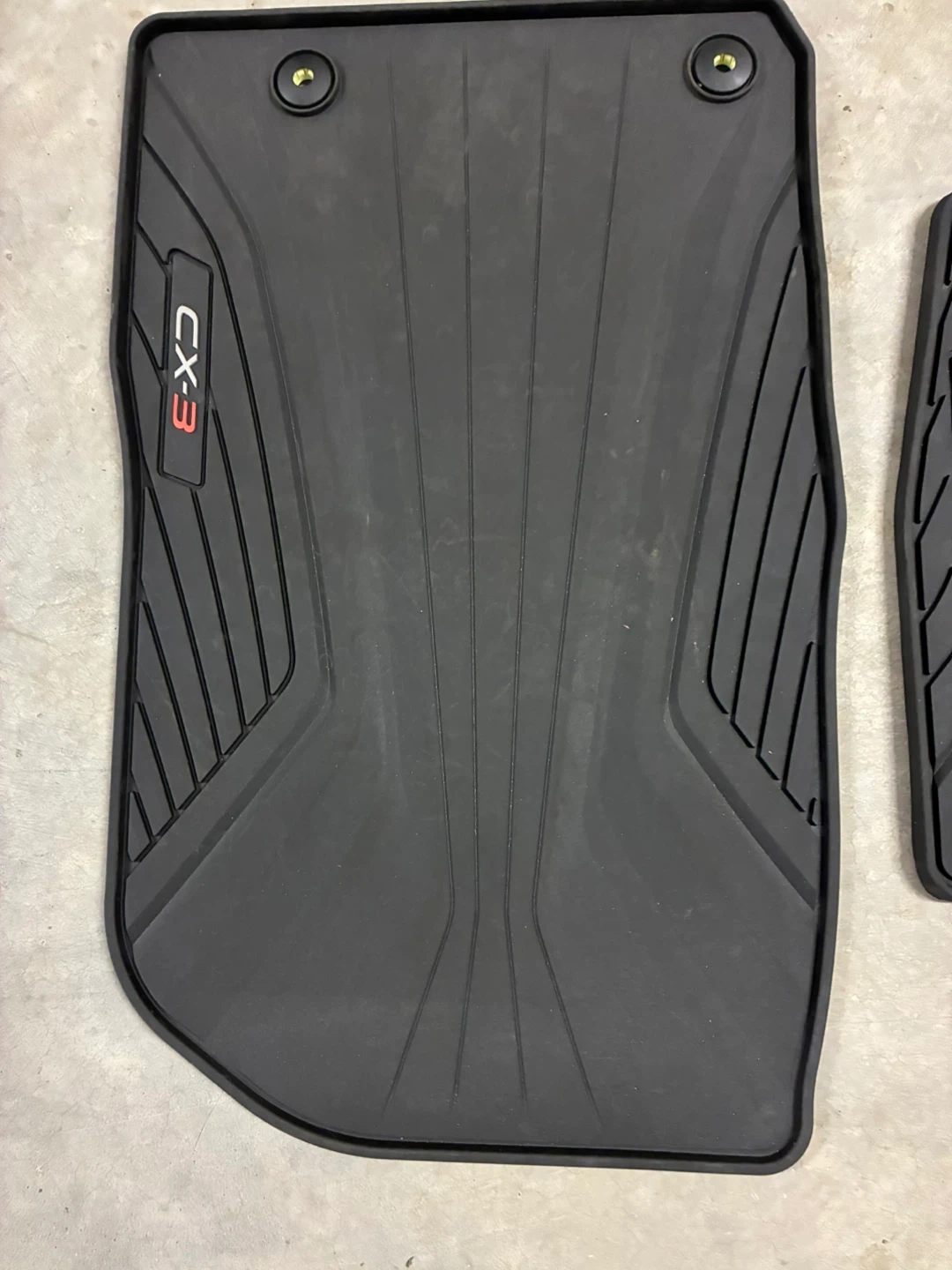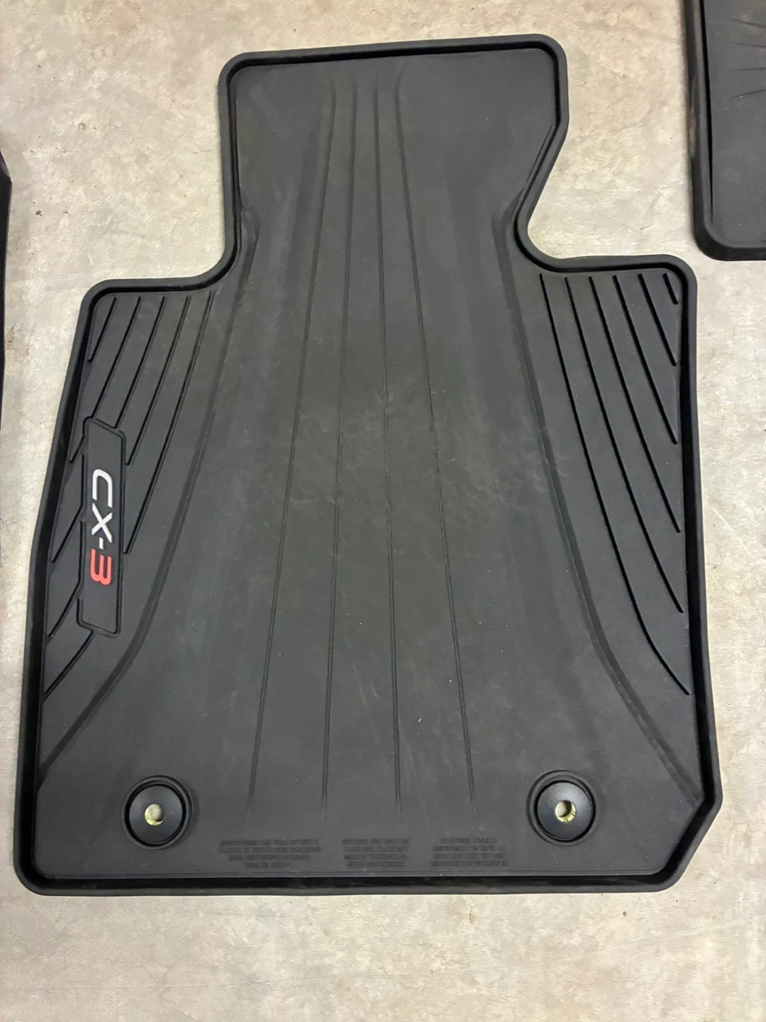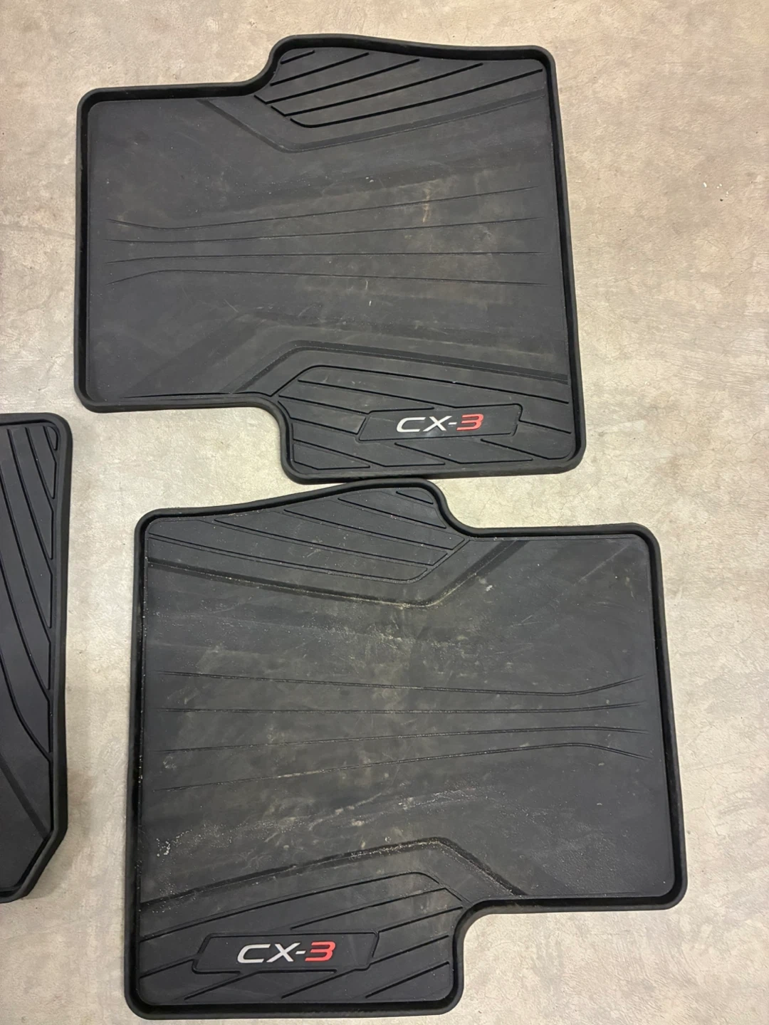 Selling a set of black floor mats for a Mazda CX-3. They're in good condition and ready to keep your car clean!