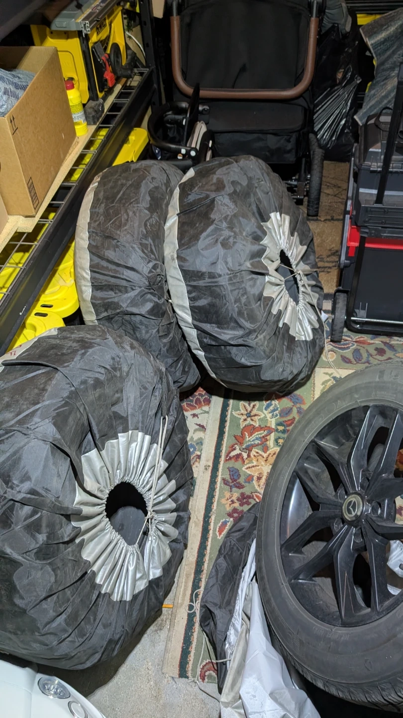 55I'm selling my set of used winter tires and rims because I'm switching things up. These are the perfect ready-to-go setup for this coming winter. They're the proper size for the CX-50—225/65R17. They come mounted on black Mazda steel rims, so they’re ready to bolt right onto your ride. I only ran these for two winter seasons, so there's plenty of life left in them. I've taken photos to show the tread wear, which is solid. They're all bagged up and ready to be picked up in Scarborough, Ontario.