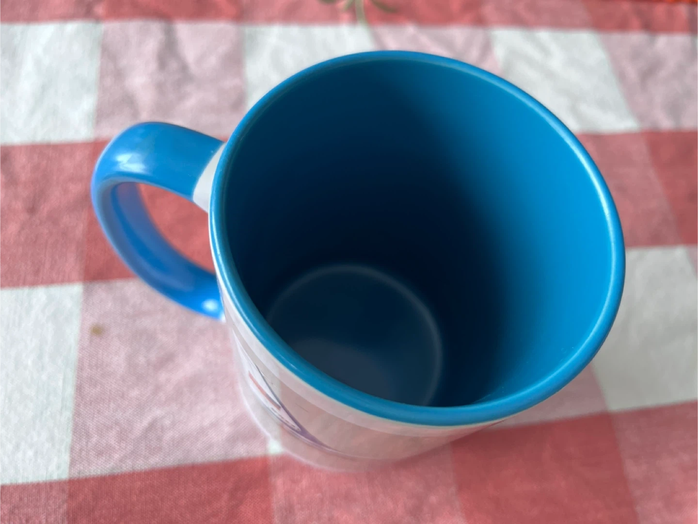 Showcasing a mug featuring Air Force One and the Reagan Library logo. The interior and handle are a vibrant blue colour. A great piece for collectors or anyone who appreciates aviation history!