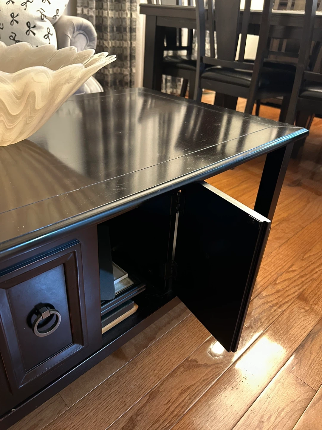 🖤 Elegant Black Wood Coffee Table with Storage Timeless Style! 🖤