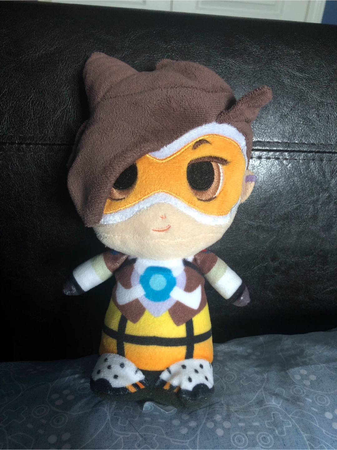 A collection of Overwatch plush toys featuring popular characters. These plushies are soft and cuddly. They're great for any fan's collection!