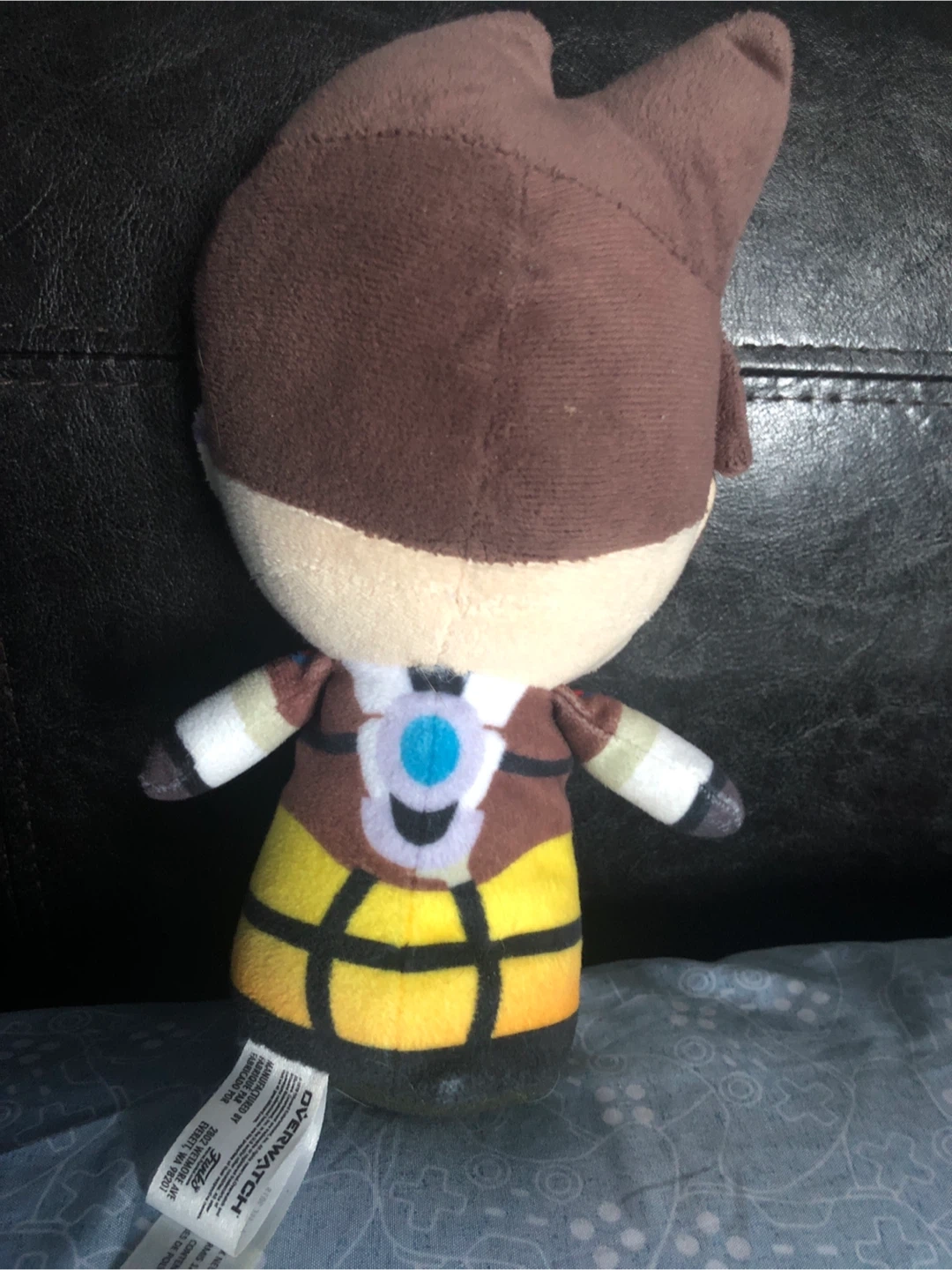 A collection of Overwatch plush toys featuring popular characters. These plushies are soft and cuddly. They're great for any fan's collection!