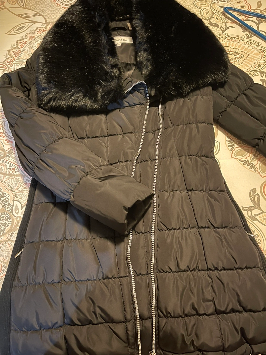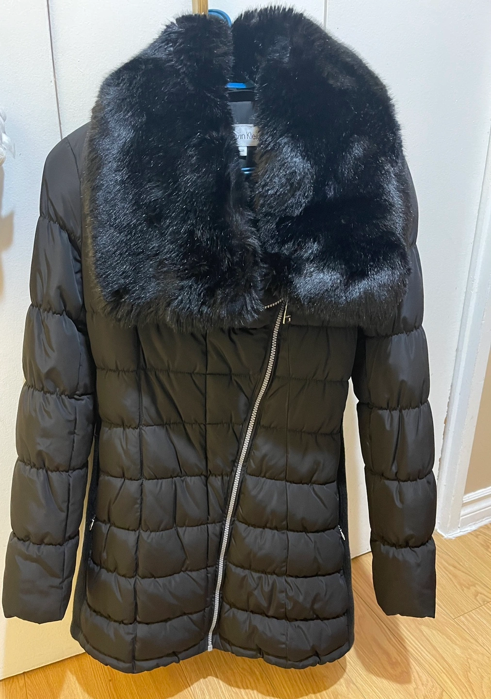 Calvin Klein Black Puffer Jacket with Faux Fur Collar
