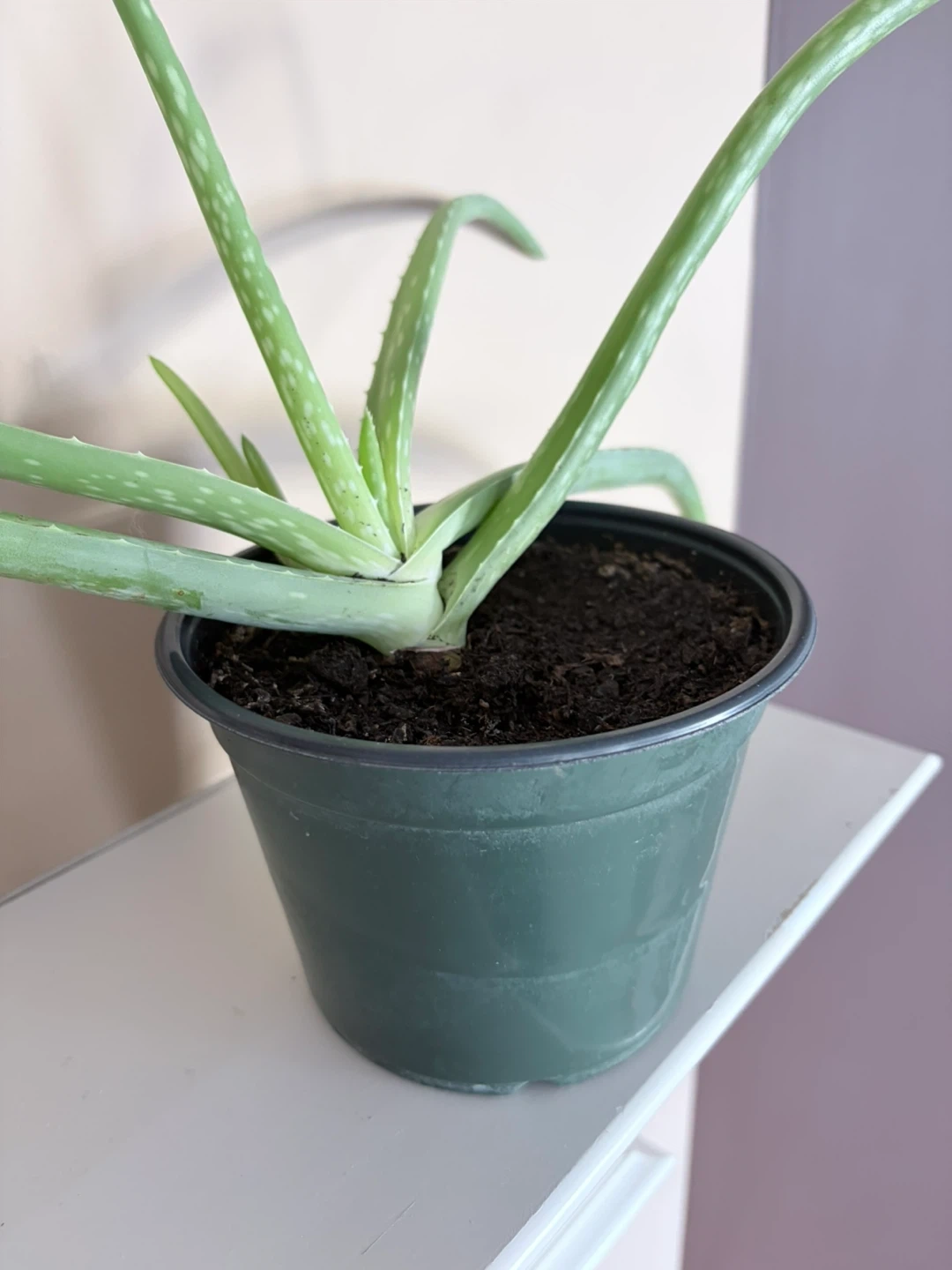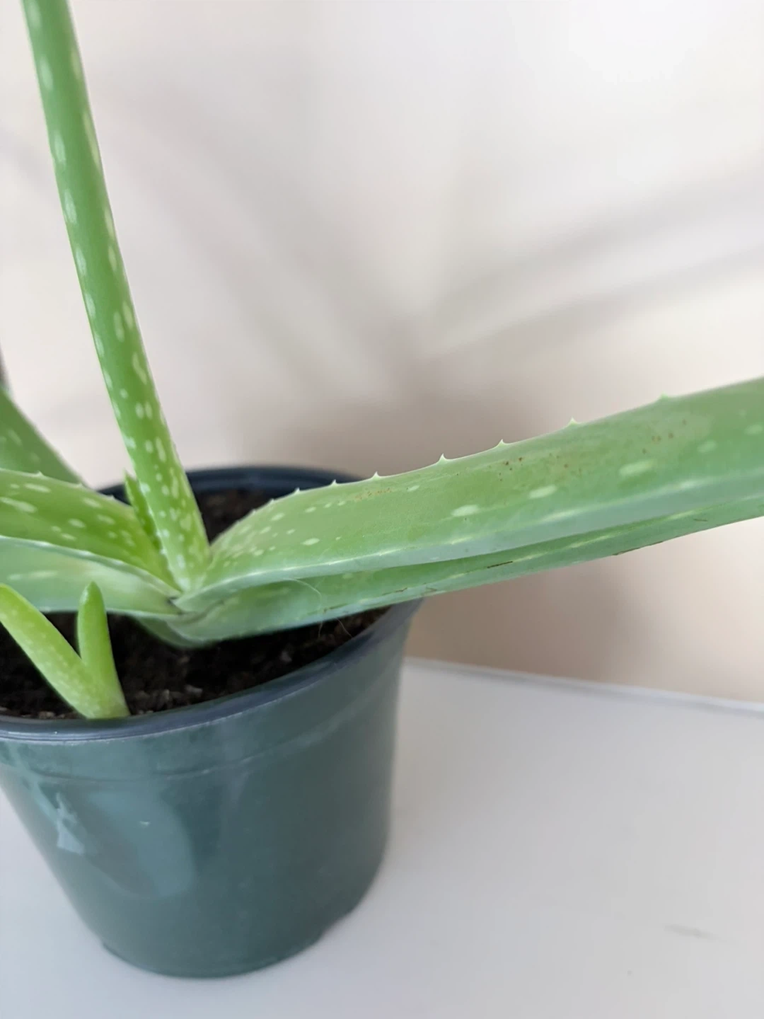 Healthy aloe vera plant with baby. 6 inch pot. It's a low-maintenance houseplant, great to have in kitchen for cuts and burns. Selling because I have too many plants for my new space.