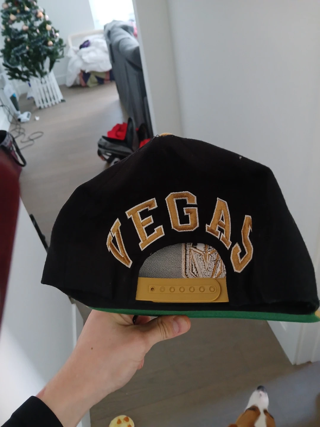 Buy & SellVegas Golden Knights Snapback HatVegas Golden Knights Snapback Hat$7.50Black snapback hat with the Vegas Golden Knights logo. Features 'VEGAS' embroidered on the back. Gold brim and accents.ConditionLike newSizeadjustableBrandAmerican Needle/NHLWHERE TO MEETRabba/TimsView MapSELLERverifiedMattLakeshore650 reviews0 chats·0 favorites·15 viewsSEND CHAT TO SELLERHi Matt! I’m interested in your listing.Hi Matt! I’m interested in your listing.Get the Karrot app to chatSign In to chat