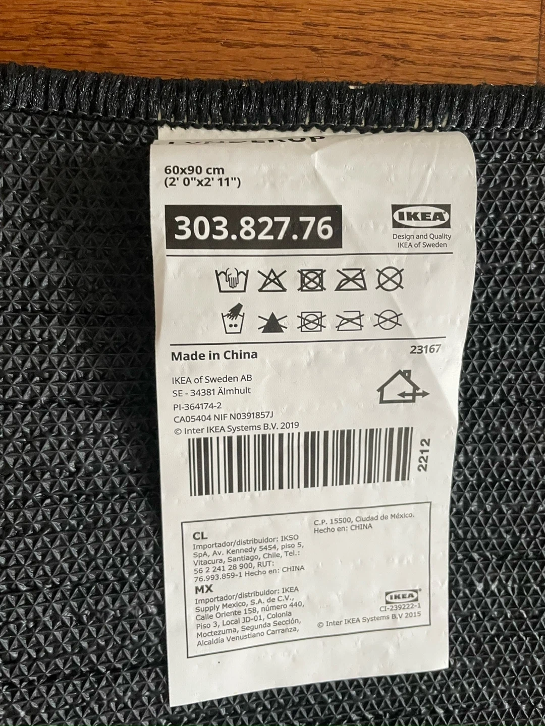 This IKEA door mat is 60x90 cm. It's made of durable material. Use it by your door to keep dirt out!