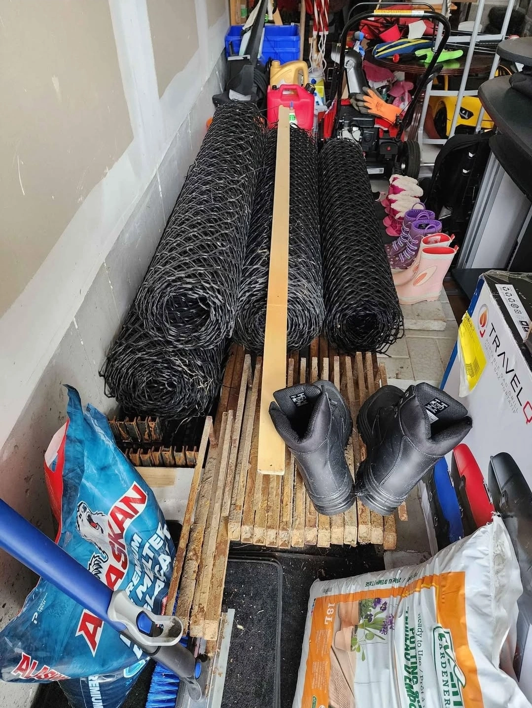 Selling a used chain link fence. The dimensions are approximately 25 feet, 25 feet, and 25 feet. Perfect for creating a secure boundary for your yard or garden