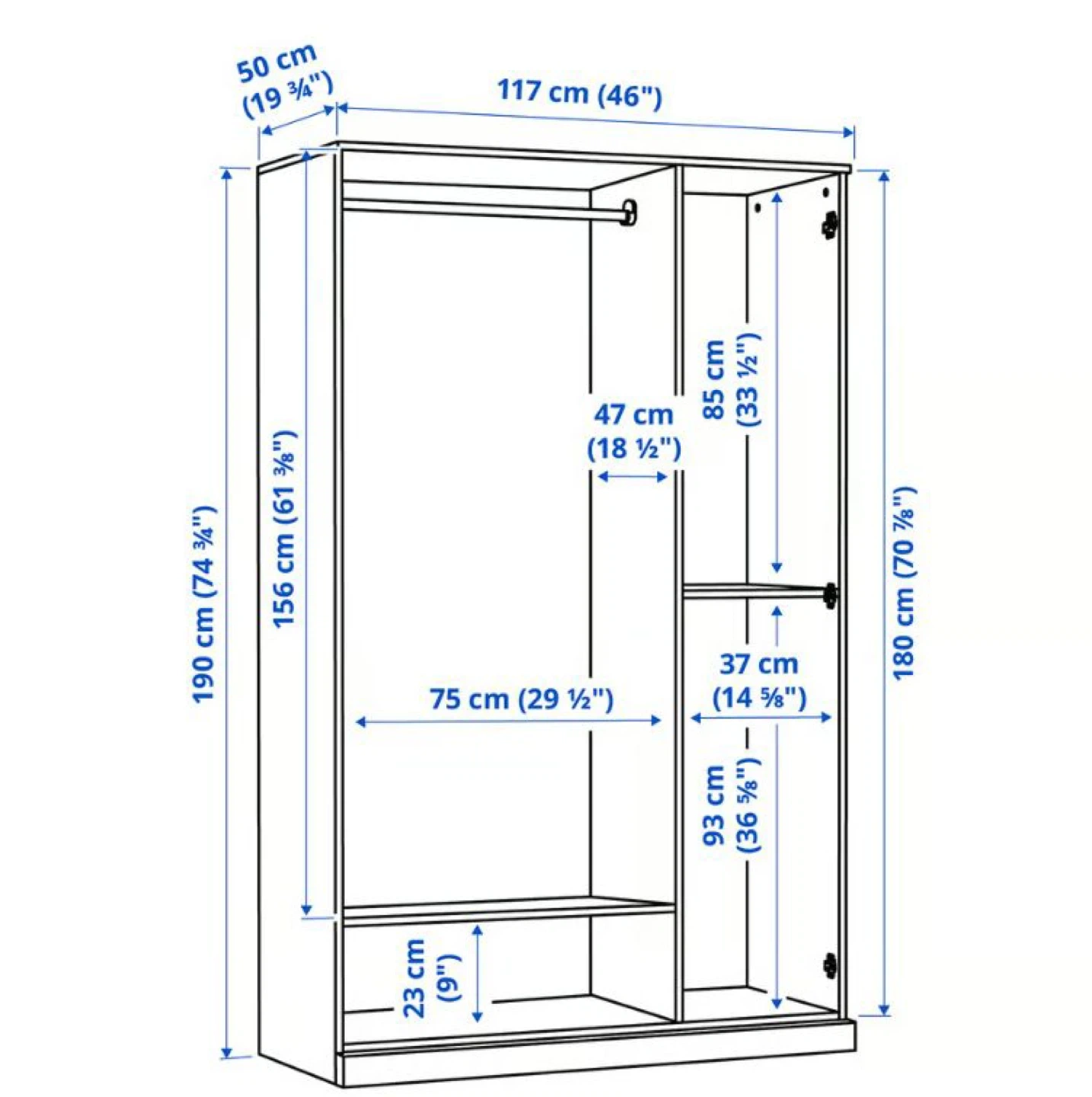 - Dimensions117x50x190 cm (46x19 3/4x74 3/4 ")