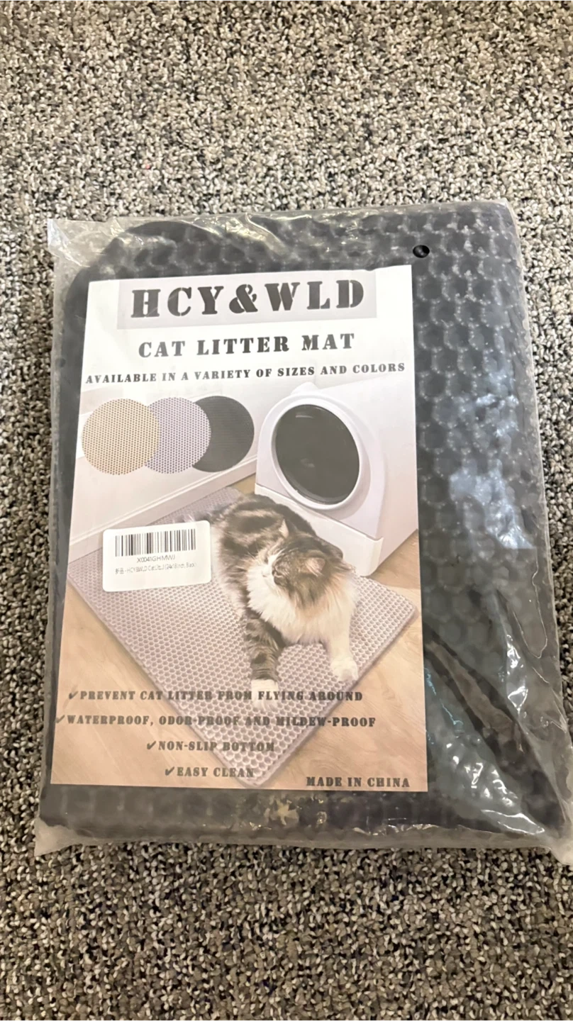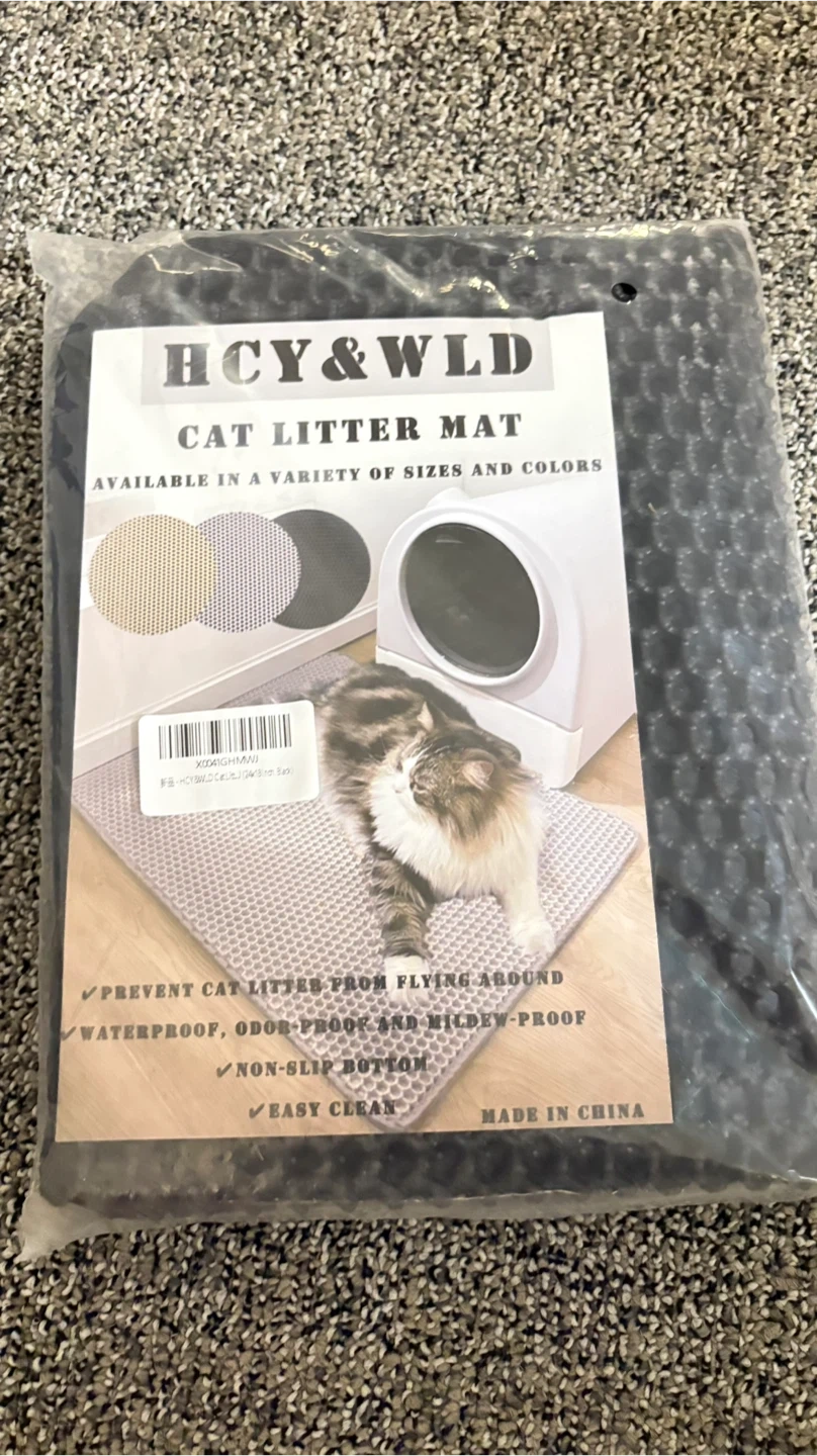 I have a brand new HCY&WLD cat litter mat still in its original packaging! This mat is designed to prevent litter from spreading, is waterproof, odor-proof, and mildew-proof. It also has a non-slip bottom and is easy to clean