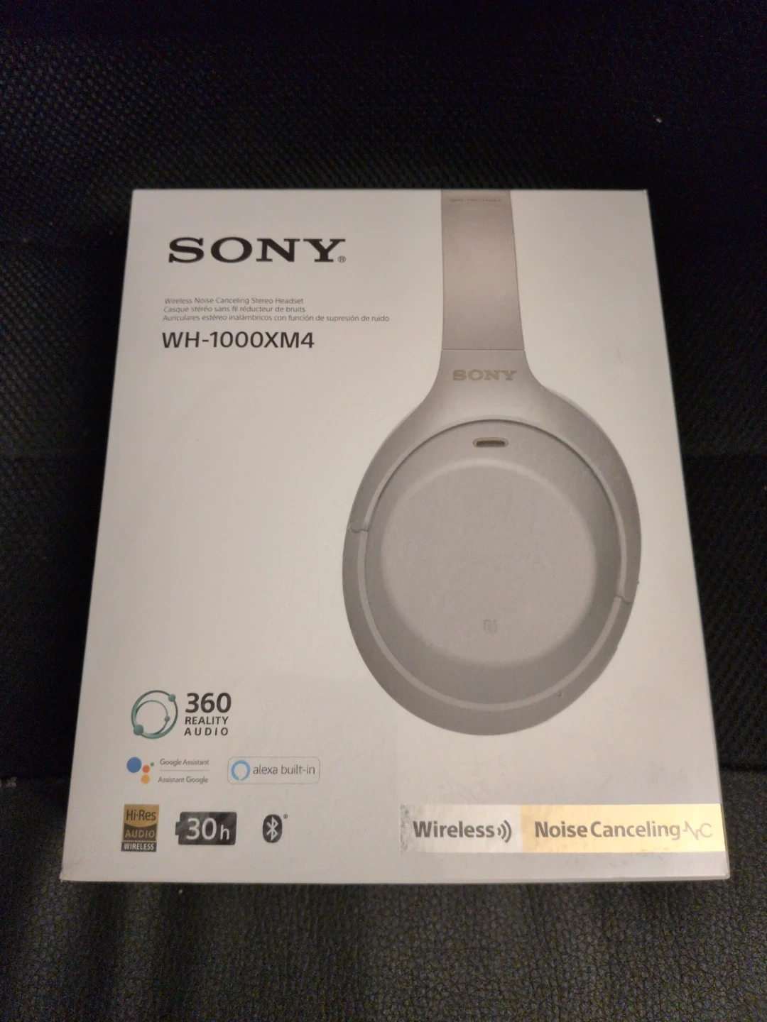Sony WH-1000XM4 wireless stereo headset with noise canceling. Features 360 Reality Audio, Google Assistant, and Alexa built-in. Offers 30 hours of battery life. Brand new - plastic wrap still fully in place.