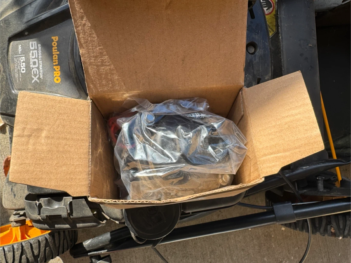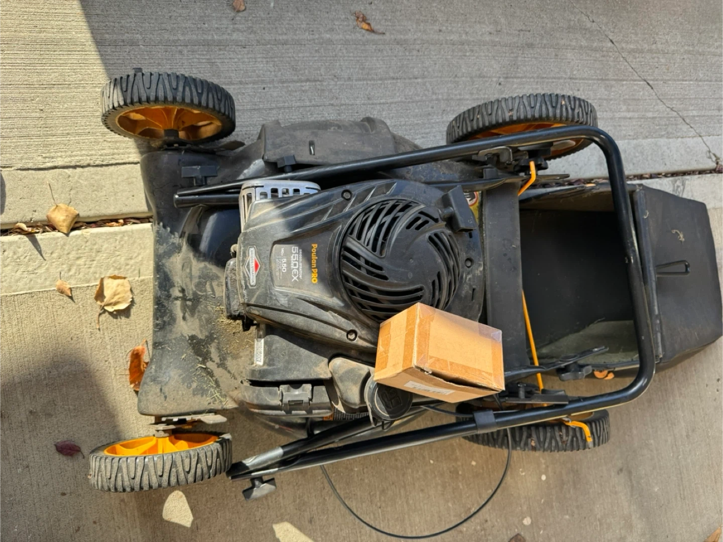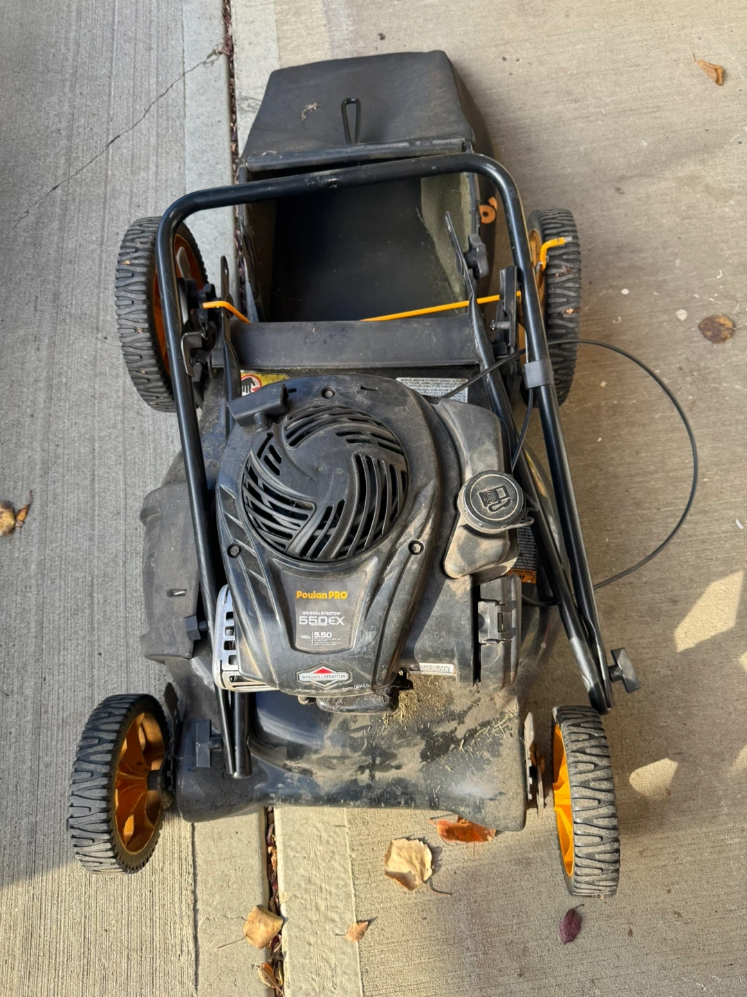 Selling a Poulan Pro lawn mower with a Briggs & Stratton 550EX engine. Comes with grass bag. Put new carburetor on, but would run rough.
