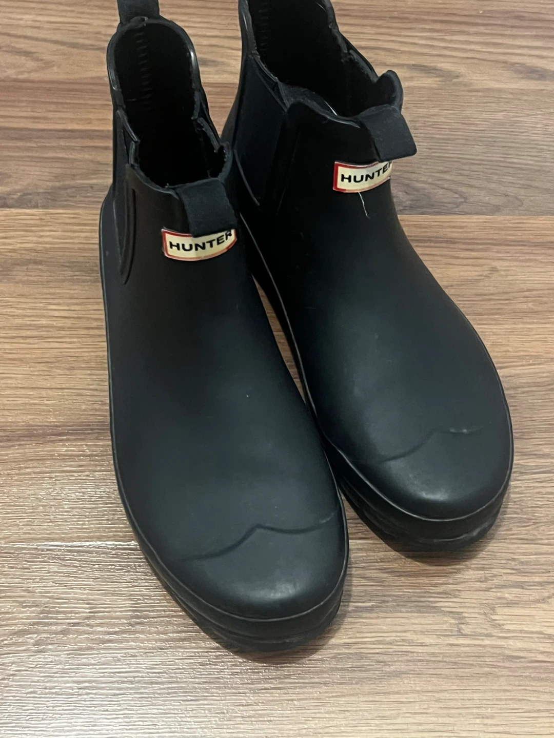 Hunter Chelsea rain boots in black, size 7. They're in great condition and perfect for those rainy or colder days!