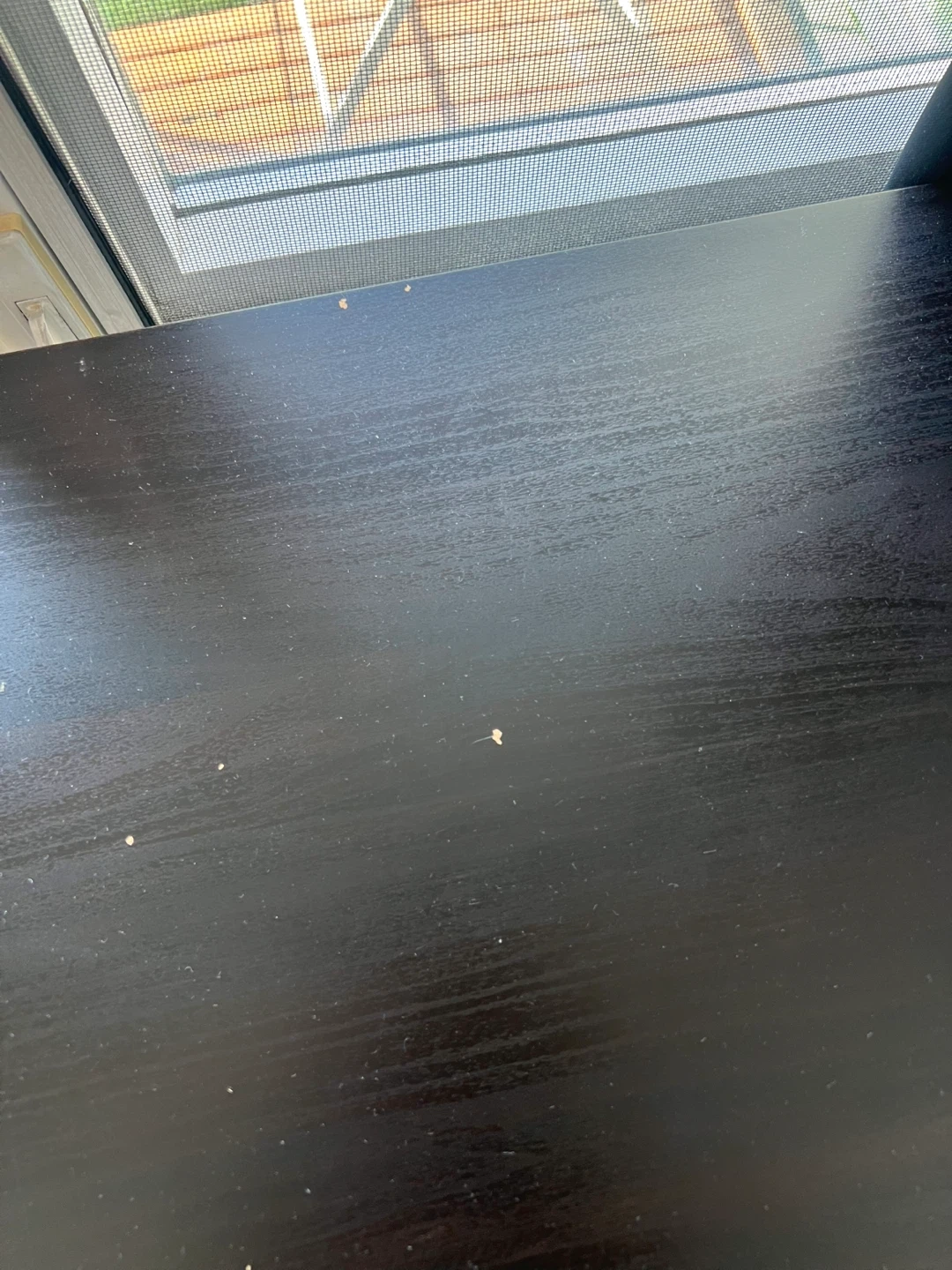 Black desk top paired with a white IKEA Alex drawer unit. Perfect for a home office or study space. Plenty of surface area for your computer and work. Some marks on the desk surface.