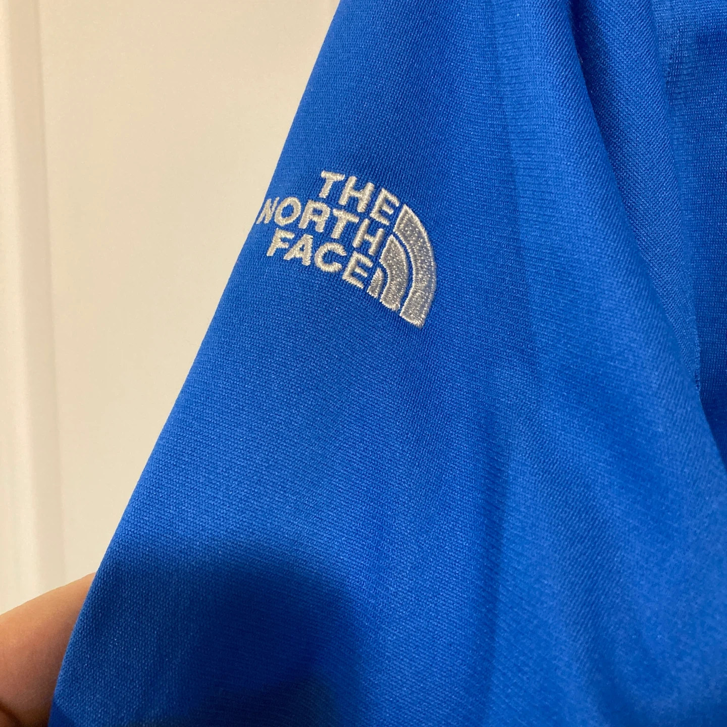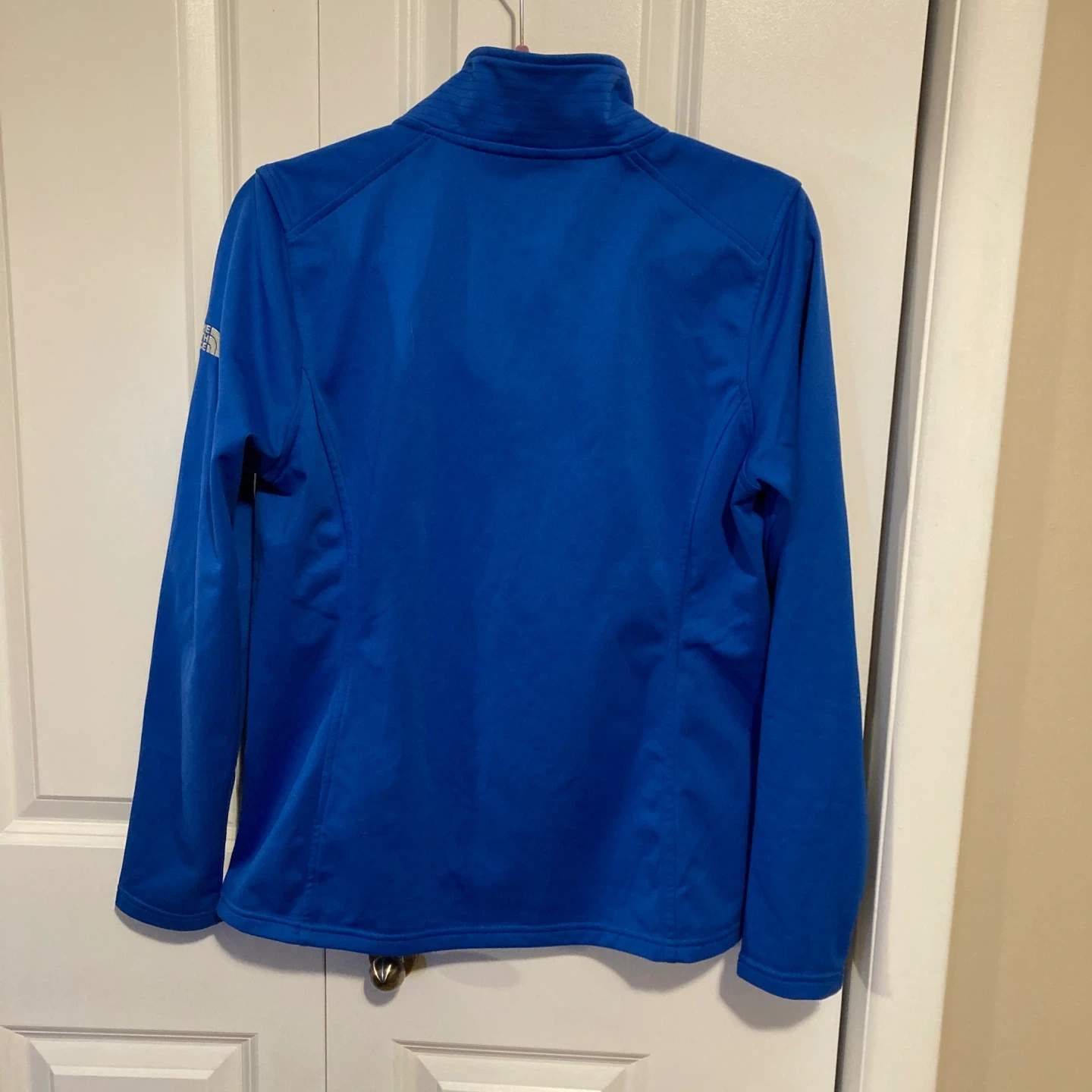 This is a women’s 1/4 zip blue The North Face pullover. It's perfect for layering on cooler days!