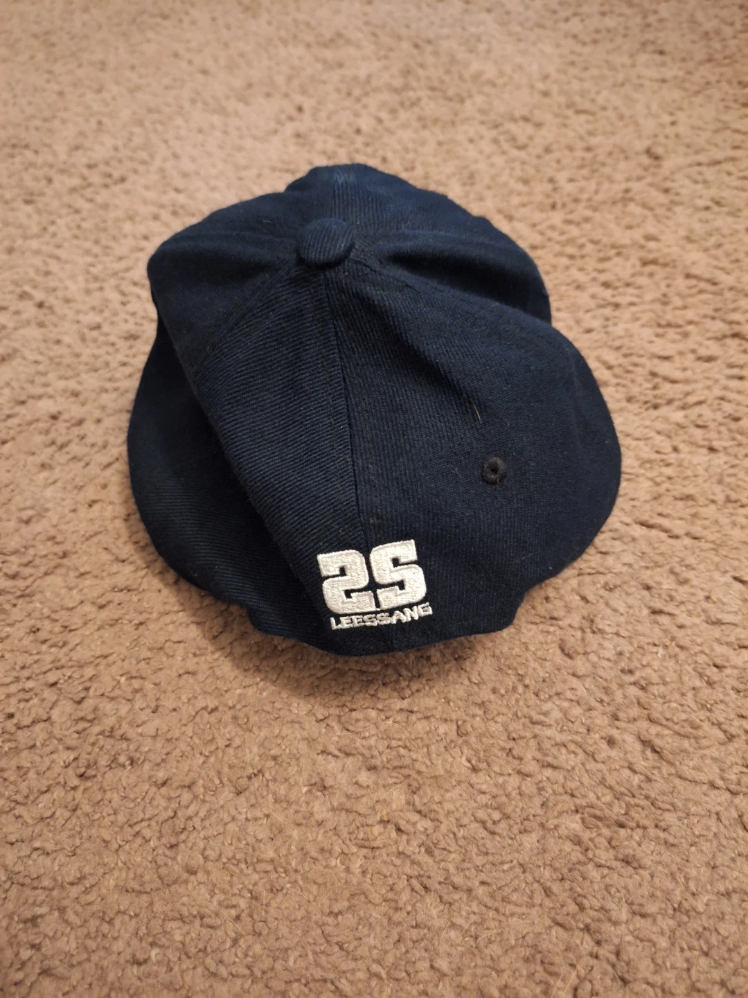 Pick up only! Here's a Leessang baseball cap in navy blue! It's made of 80% acrylic and 20% wool, and it's made in Korea. It features the Leessang logo on the front and the number 25 on the back.