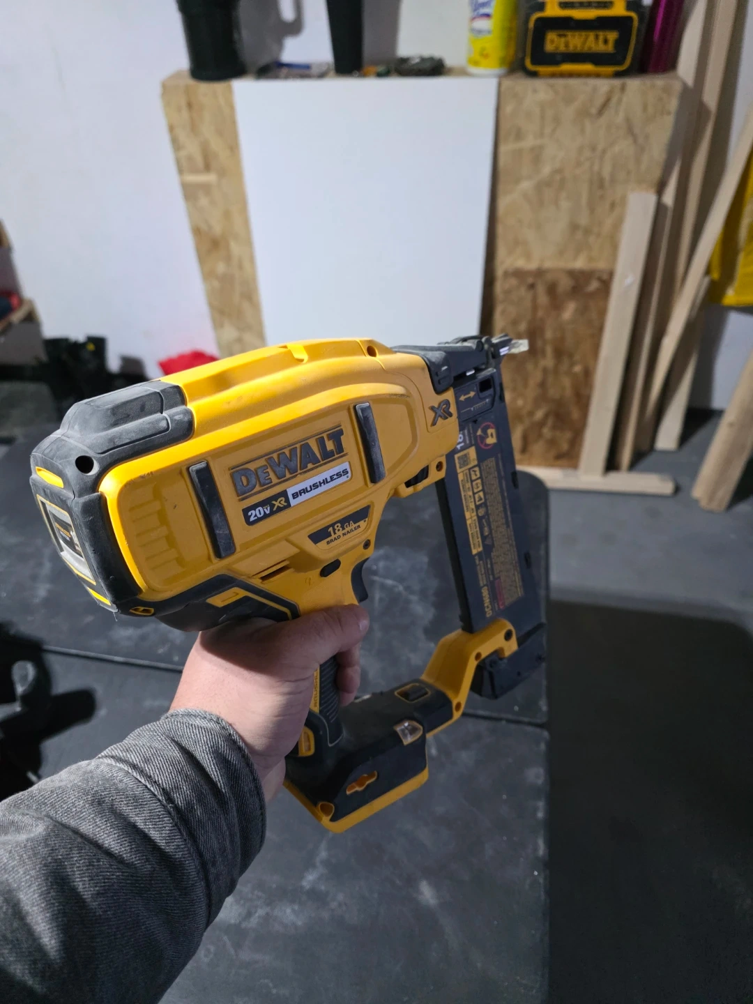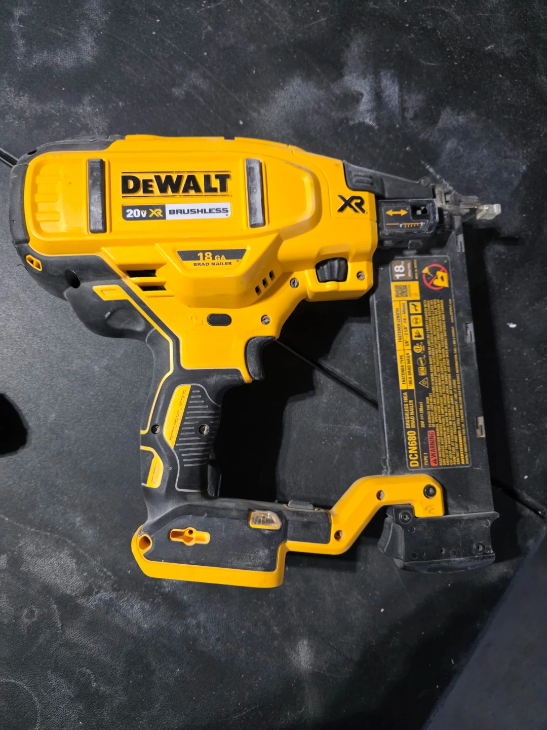 Selling a DeWalt 20V MAX XR Brushless 18GA Brad Nailer. It's in good working condition and ready for your next project! This cordless nailer offers convenience and power for various applications.