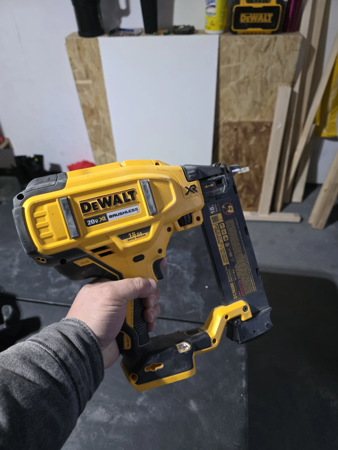 Selling a DeWalt 20V MAX XR Brushless 18GA Brad Nailer. It's in good working condition and ready for your next project! This cordless nailer offers convenience and power for various applications.