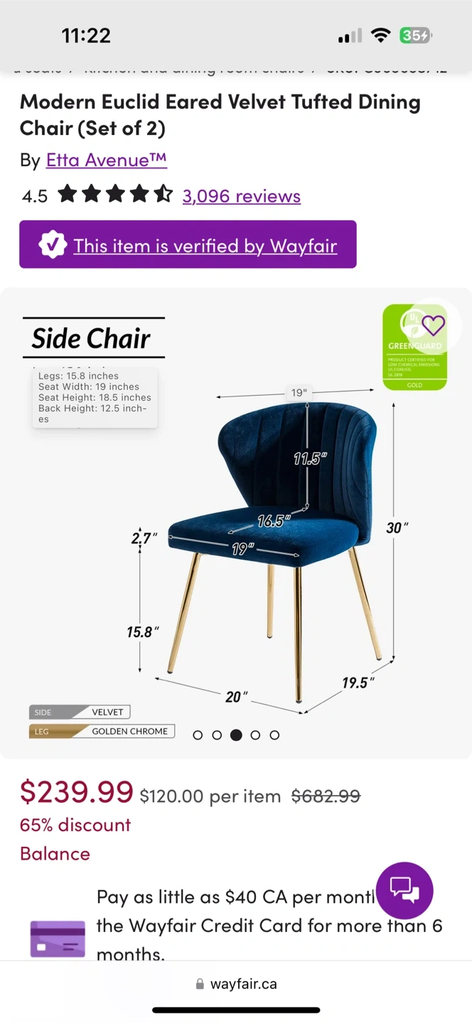 Buy & SellVelvet Dining Chairs - Set of 2 - Navy BlueVelvet Dining Chairs - Set of 2 - Navy Blue$110Set of two navy blue velvet dining chairs. Features channeled tufting and gold chrome legs. Seat height is 18.5 inches.ConditionNewWHERE TO MEETDelpark Homes CentreView MapSELLERverifiedYomaNorth Oshawa56142 reviews0 chats·0 favorites·7 viewsSEND CHAT TO SELLERHi Yoma! I’m interested in your listing.Hi Yoma! I’m interested in your listing.Get the Karrot app to chatSign In to chat