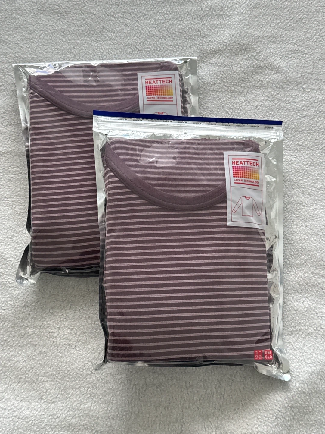 Selling 2 pack of Uniqlo Heattech long-sleeved top in a stylish stripe pattern.