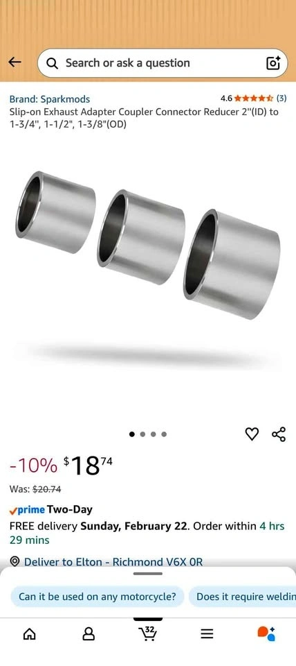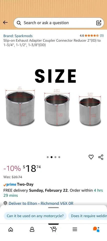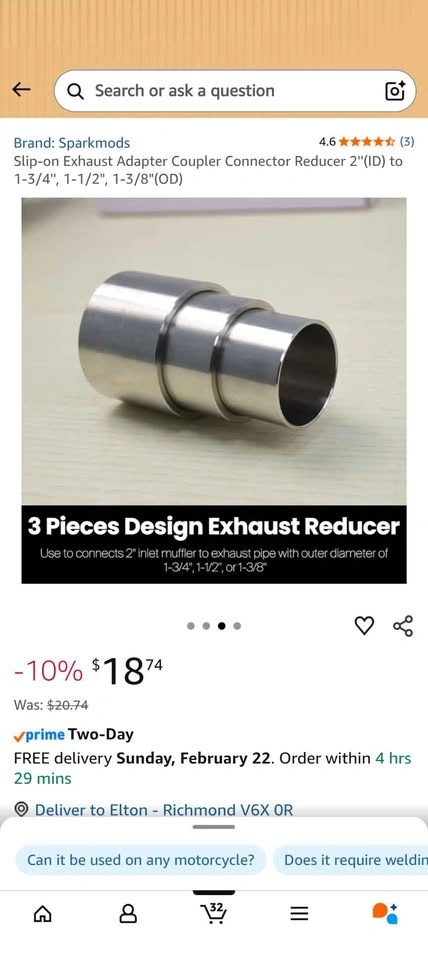 Buy & SellSlip-on Exhaust Adapter Coupler Reducer 2"(ID) to 1-3/4", 1-1/2"Slip-on Exhaust Adapter Coupler Reducer 2"(ID) to 1-3/4", 1-1/2"$10New. Pick up in Richmond.ConditionNewWHERE TO MEETWalmart SupercentreView MapSELLERverifiedEltonW Camble29020 reviews0 chats·0 favorites·1 viewsSEND CHAT TO SELLERHi Elton! I’m interested in your listing.Hi Elton! I’m interested in your listing.Get the Karrot app to chatSign In to chat
