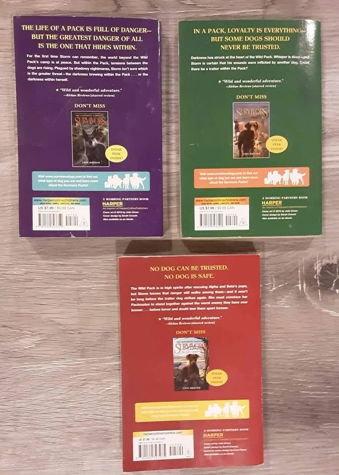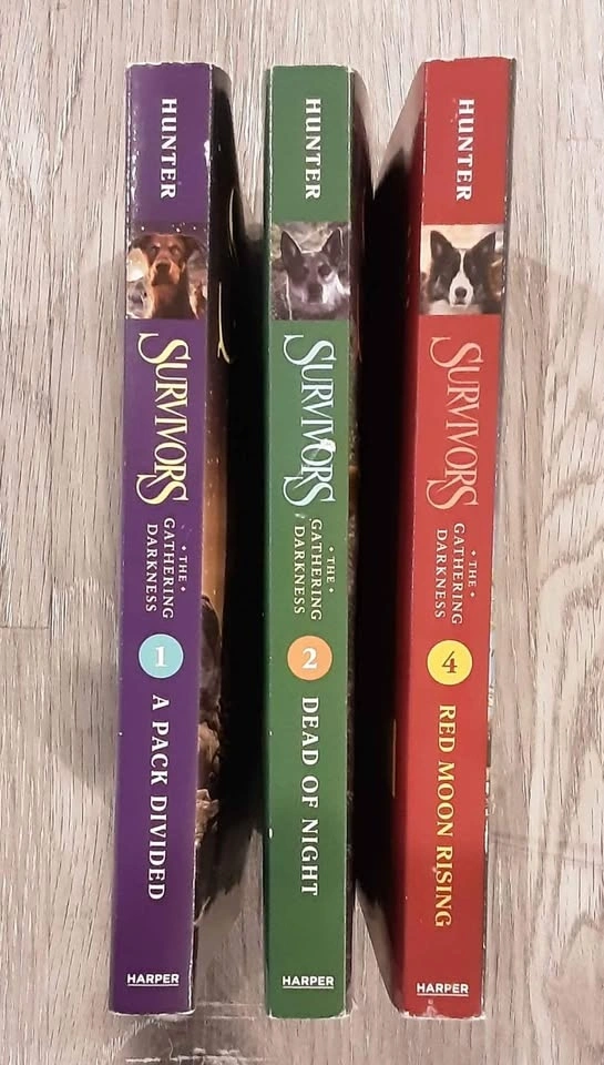 Great condition, paperback books from the Survivors series by Erin Hunter. This set includes books 1, 2, and 4. Originally $9.99 each. Pick up in north-end St. Catharines. Feel free to message if you have any questions!