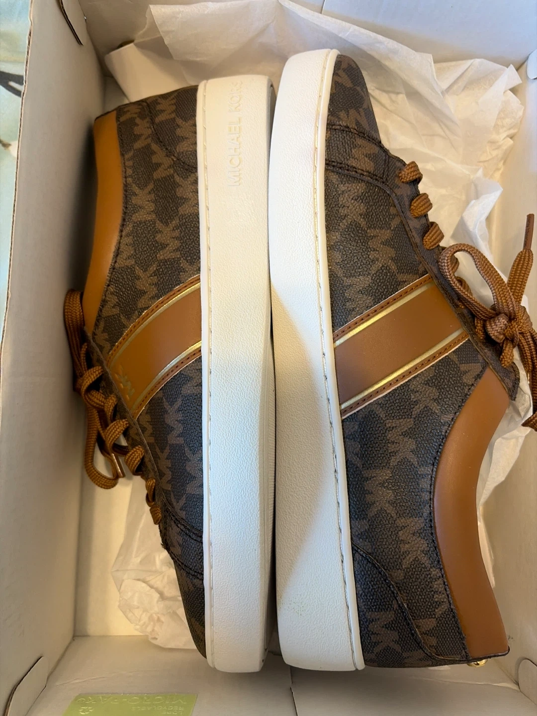 Buy & SellMichael Kors SneakersMichael Kors Sneakers$50Michael Kors sneakers featuring the signature MK logo print. These shoes have brown and tan accents with a white sole. They come in the original box.ConditionNewSize8.5MBrandMichael KorsWHERE TO MEETCheck LocationView MapSELLERverifiedLisaEast Harlem49140 reviews1 chats·0 favorites·12 viewsSEND CHAT TO SELLERHi Lisa! I’m interested in your listing.Hi Lisa! I’m interested in your listing.Get the Karrot app to chatSign In to chat