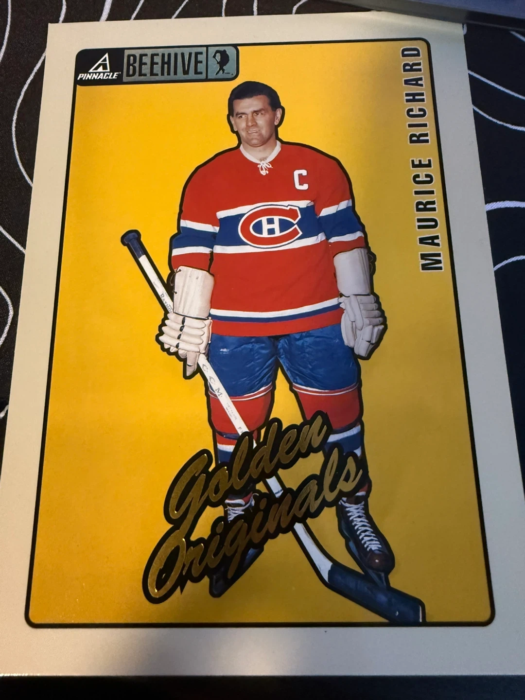 A collection of Pinnacle Beehive hockey cards featuring "Golden Originals". Includes cards for Johnny Bower, Maurice Richard, Willie O'Ree, and more.