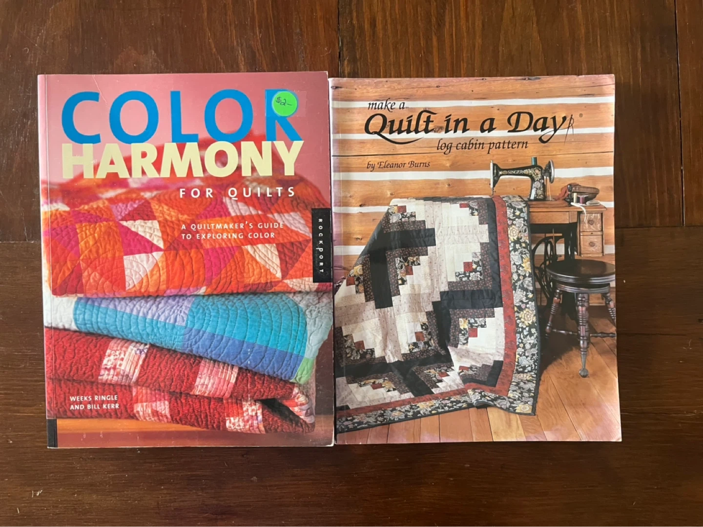 Two books on quilting. 'Color Harmony for Quilts' is a guide to exploring colour, written by Weeks Ringle and Bill Kerr. 'Make a Quilt in a Day' features a log cabin pattern by Eleanor Burns. Both books are great for quilters of all levels.