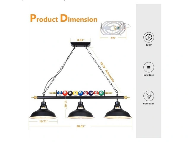 48Mcacggo 3-Light Billiard Pool Table Lights, for 7'-8' Table with Black Matte Metal Shades and Billiard Ball Decor, for Billiards Room, Snooker Table, Kitchen Island For Sale By: Owner
