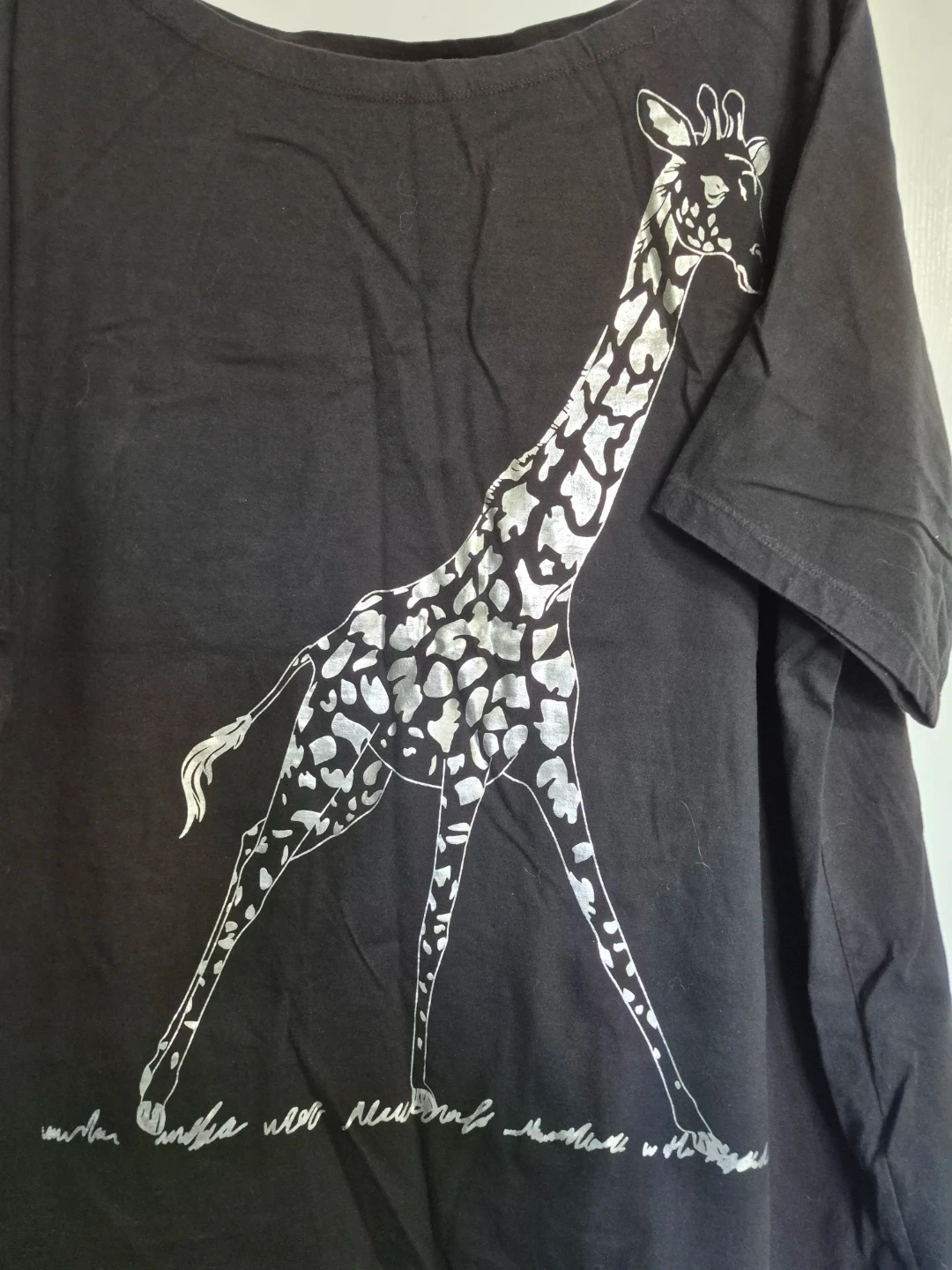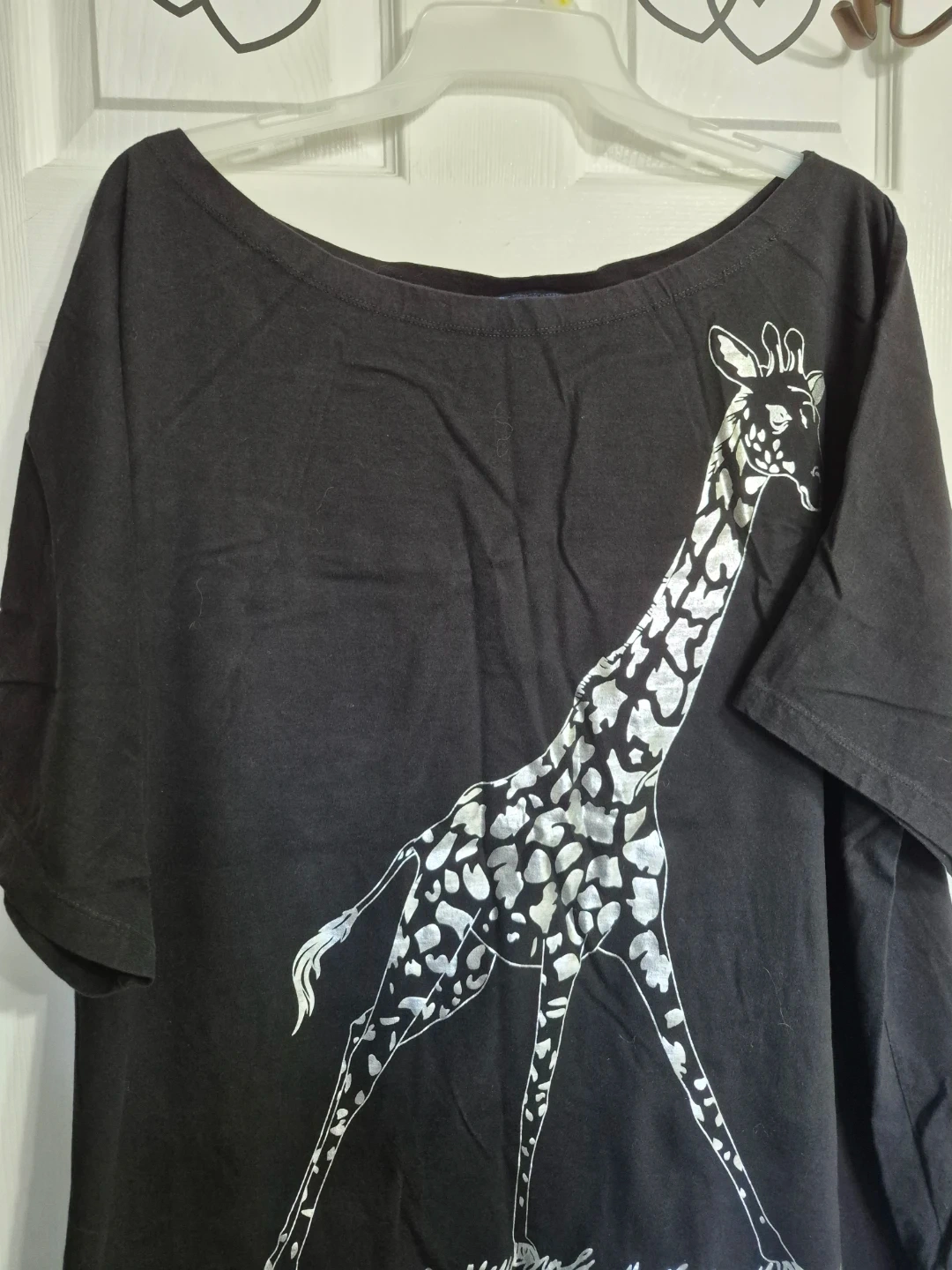 Penningtons Size 3X 100% Cotton Black Top with Large Giraffe & Wide Neck Excellent Used Condition please see all pictures