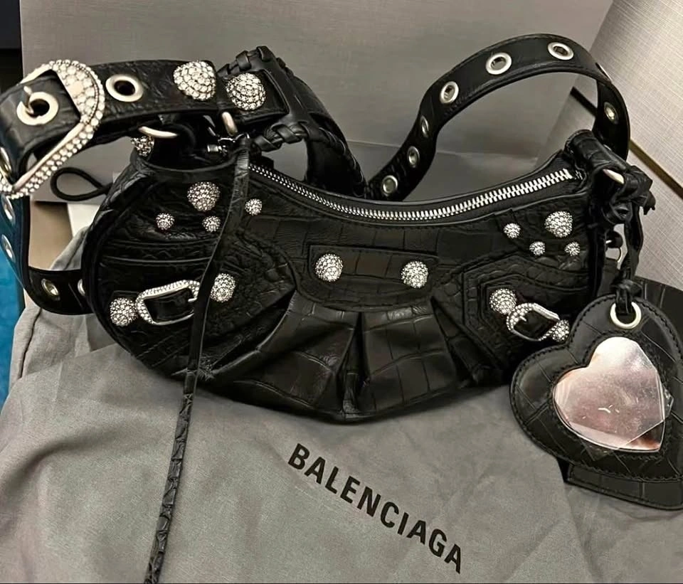 Brand New Balenciaga Le Crogle XS paved with crystal cut studs