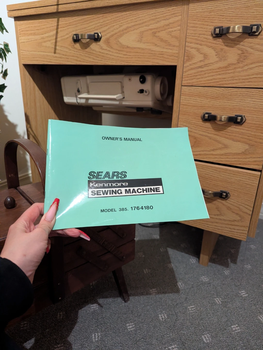 Selling a Sears Kenmore sewing machine, model 385.1764180. It comes with the owner's manual