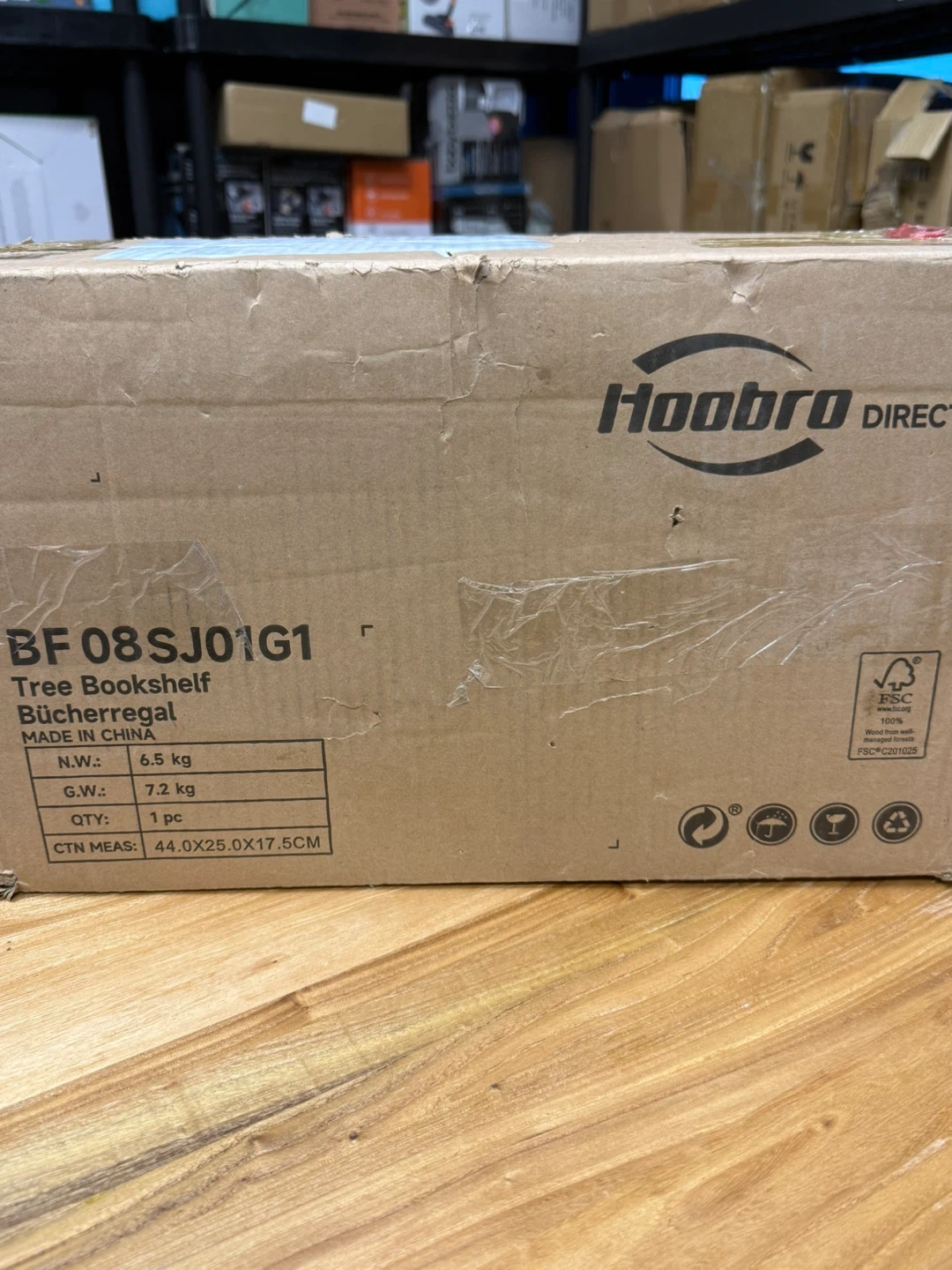 This HOOBRO tree bookshelf features a unique design with 9 tiers for displaying books or CDs. Made from wood and metal, it's a stylish storage rack. It's great for use in living rooms or bedrooms. The dimensions are 44.0" x 25.0" x 17.5".