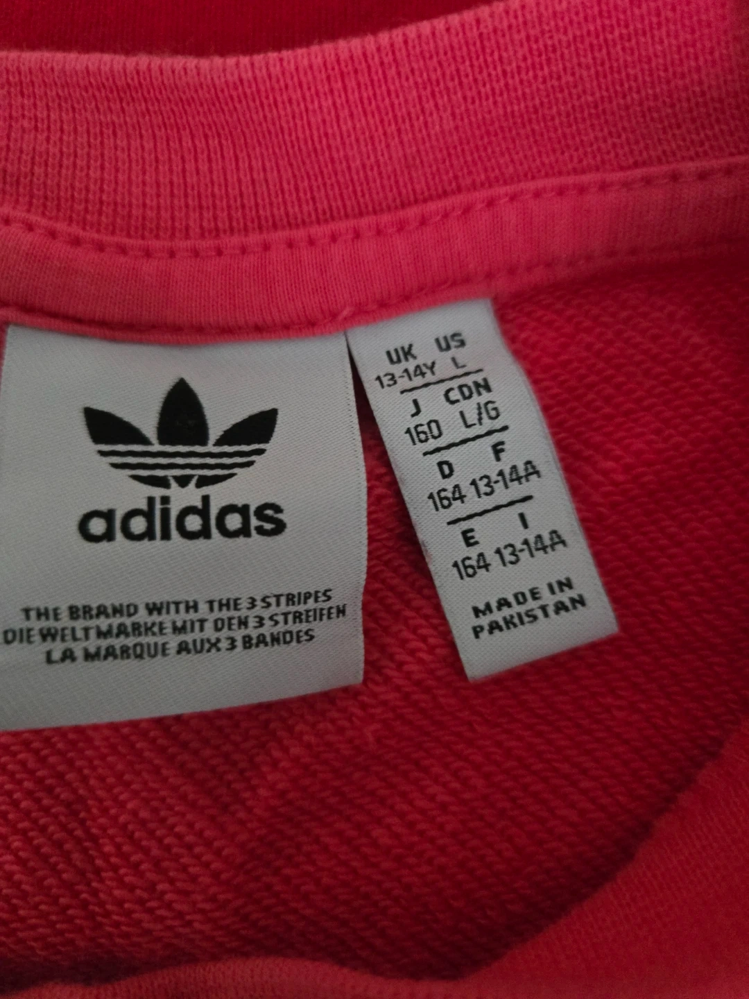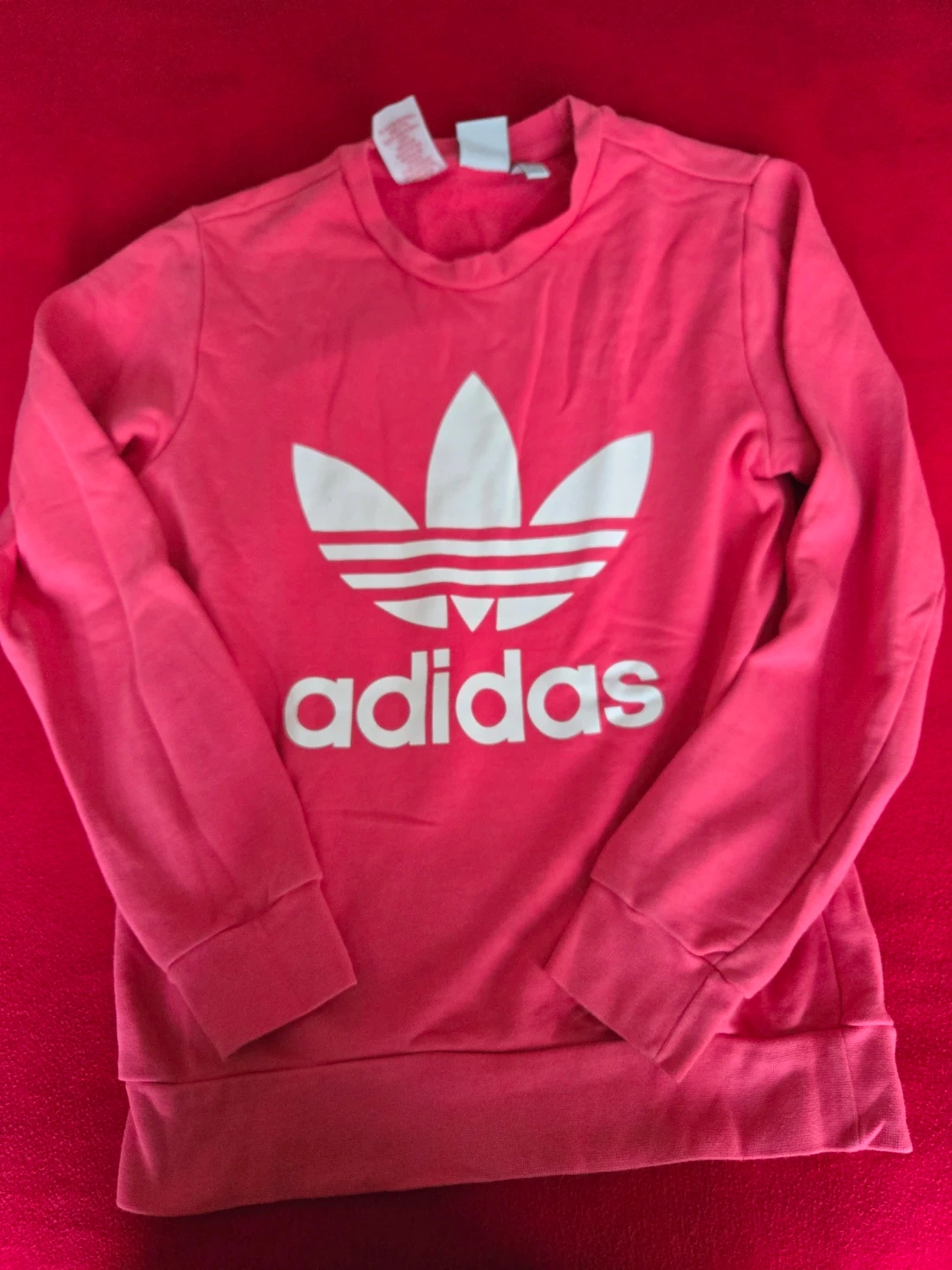 Adidas sweatshirt in a lovely pink colour! The size is L, which corresponds to ages 13-14 years. It's in great condition, but fits for regulars as a medium