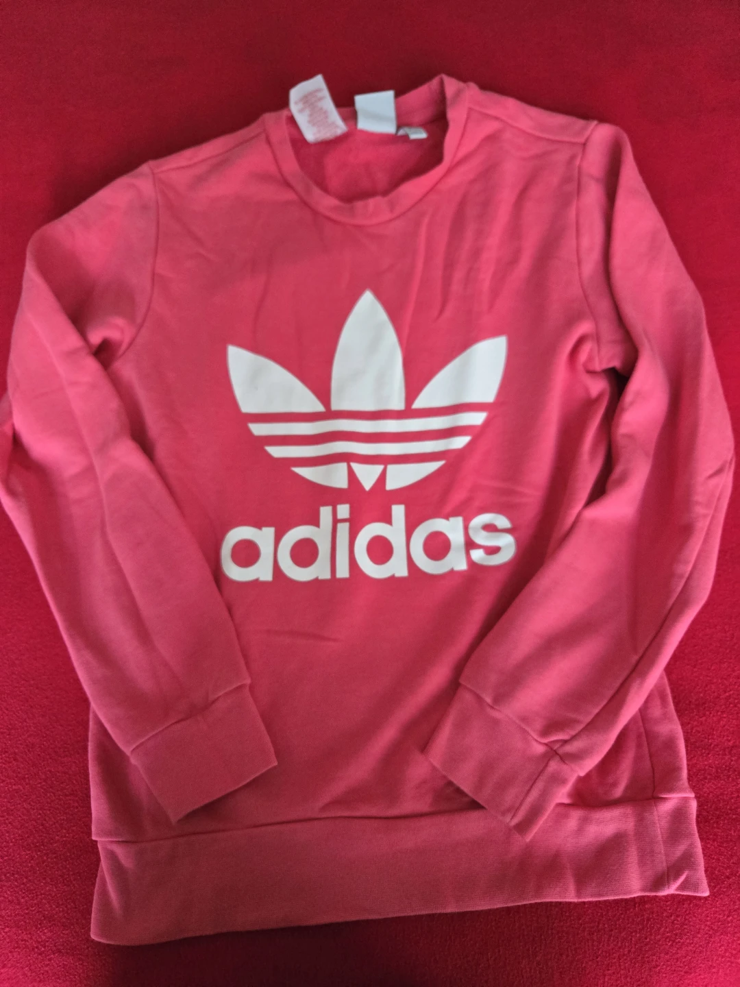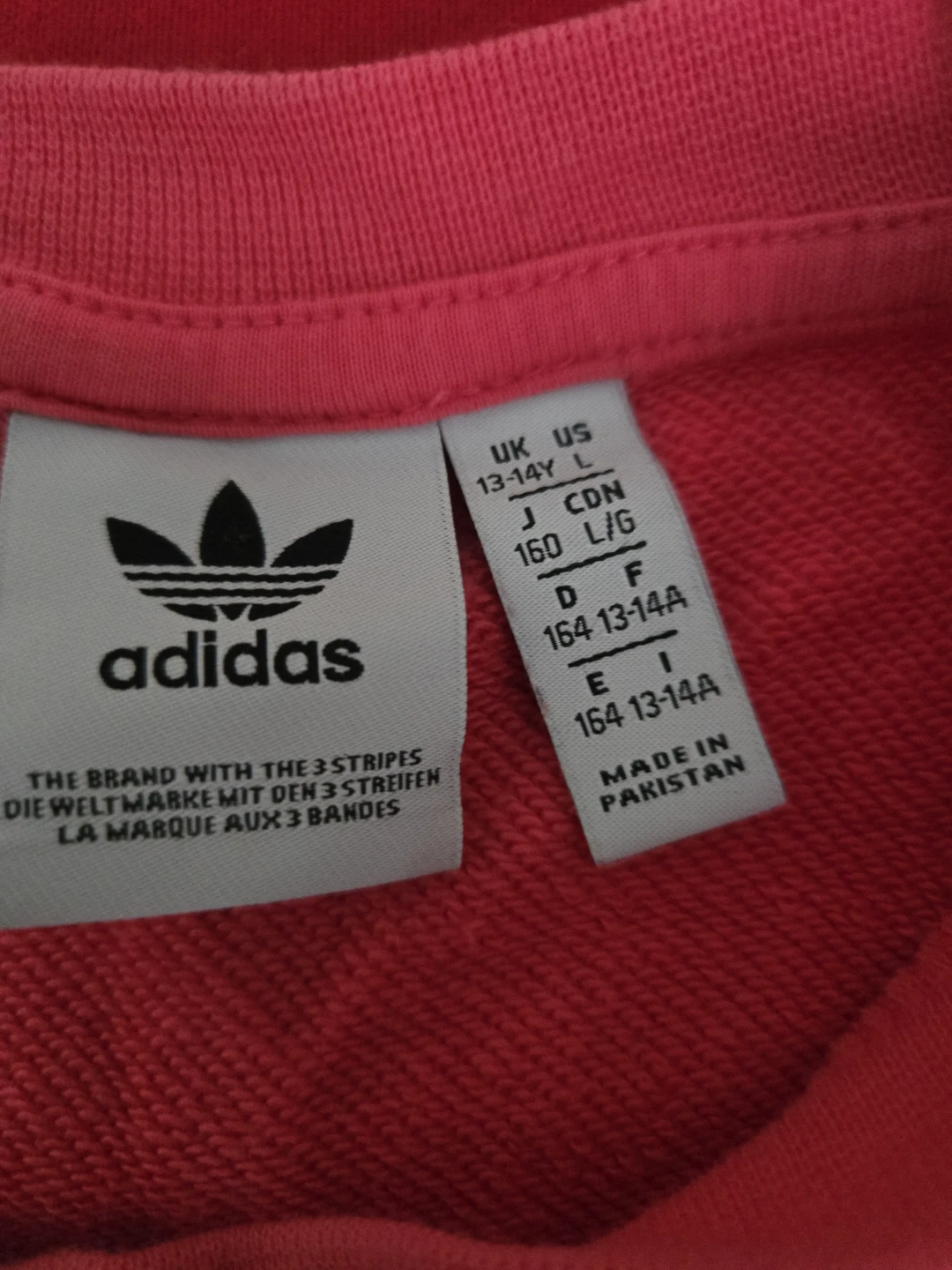 Adidas sweatshirt in a lovely pink colour! The size is L, which corresponds to ages 13-14 years. It's in great condition, but fits for regulars as a medium