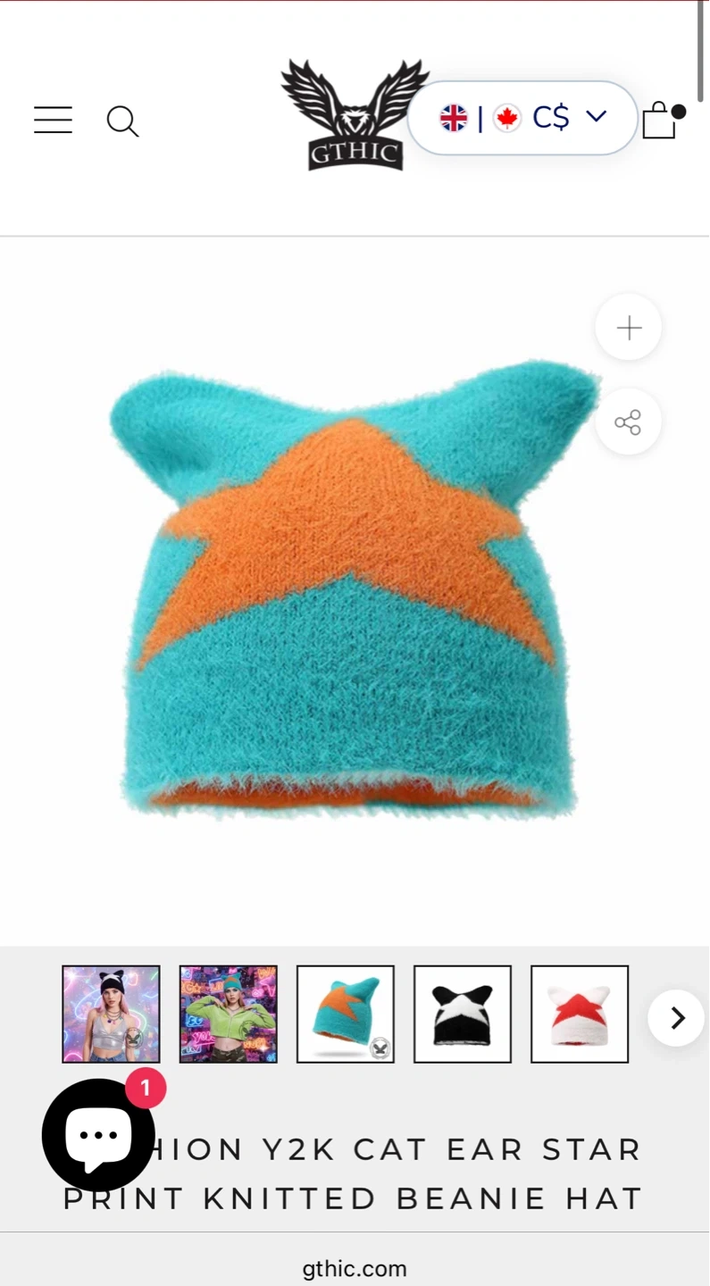 Authentic GTHIC Teal Orange Star Print Knitted Cat Ear Beanie