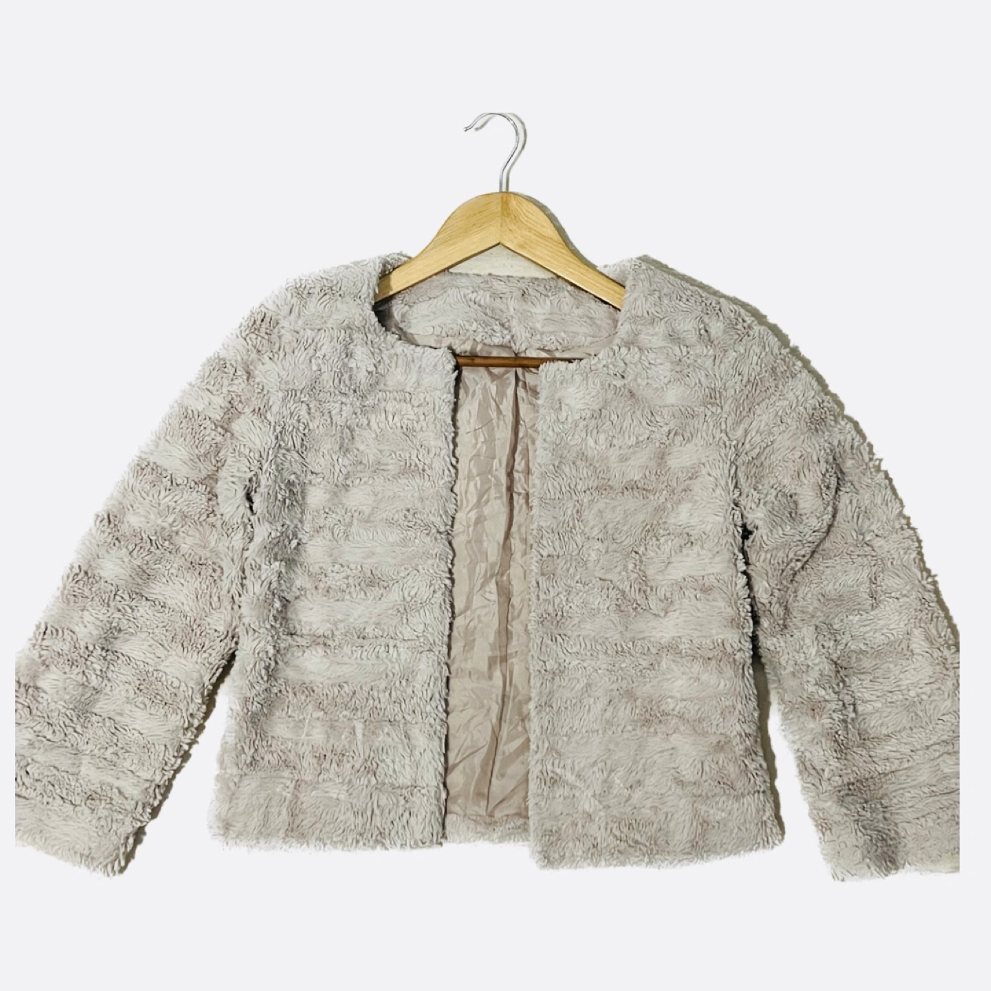 Greige faux fur coat I’m not sure what the color is 😂
