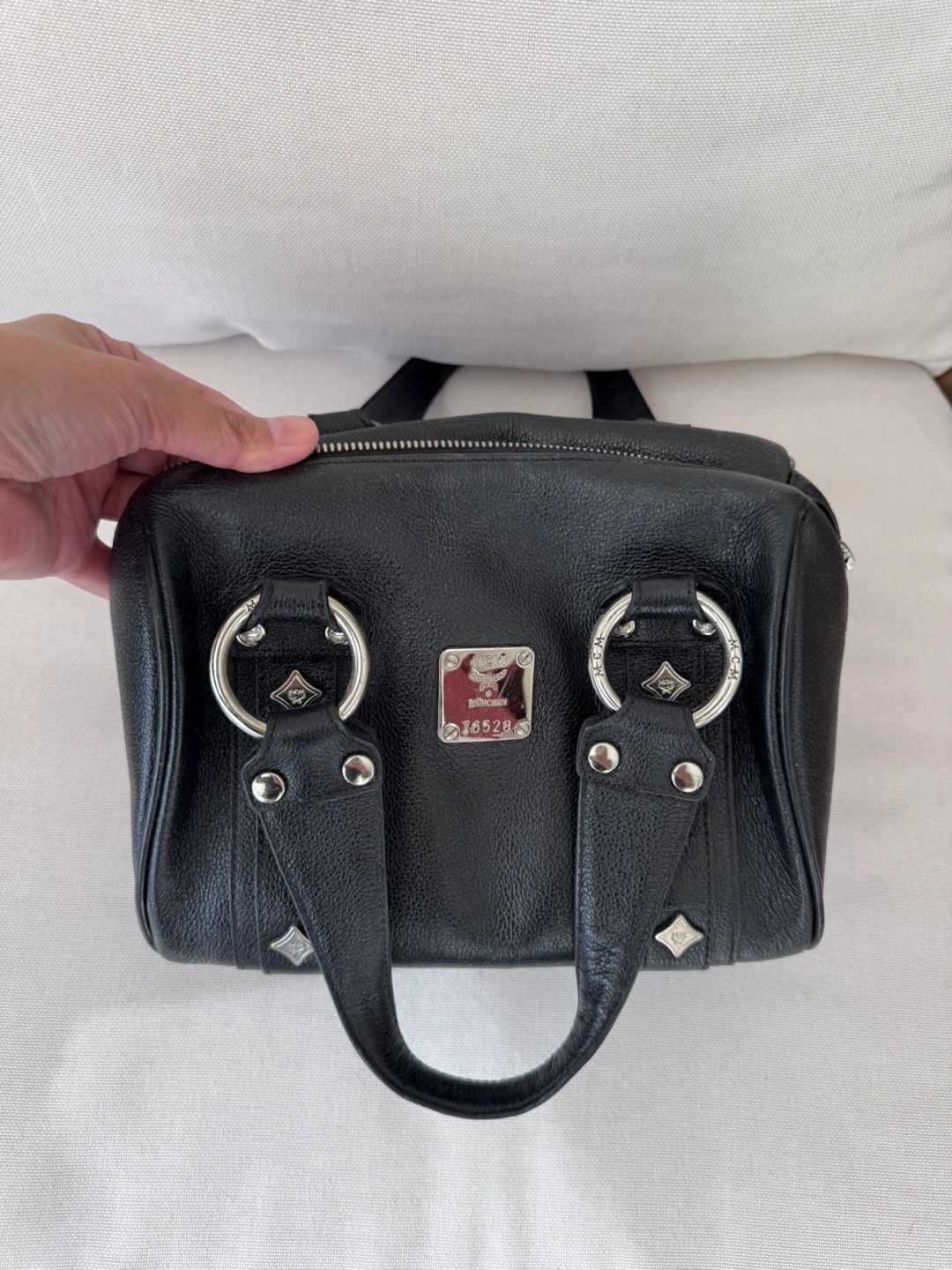 65This is a stylish MCM handbag in black leather! It's perfect for carrying your essentials in a chic way. The bag features the MCM logo and silver-tone hardware. It's in great condition and ready for a new home