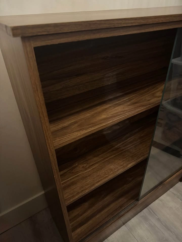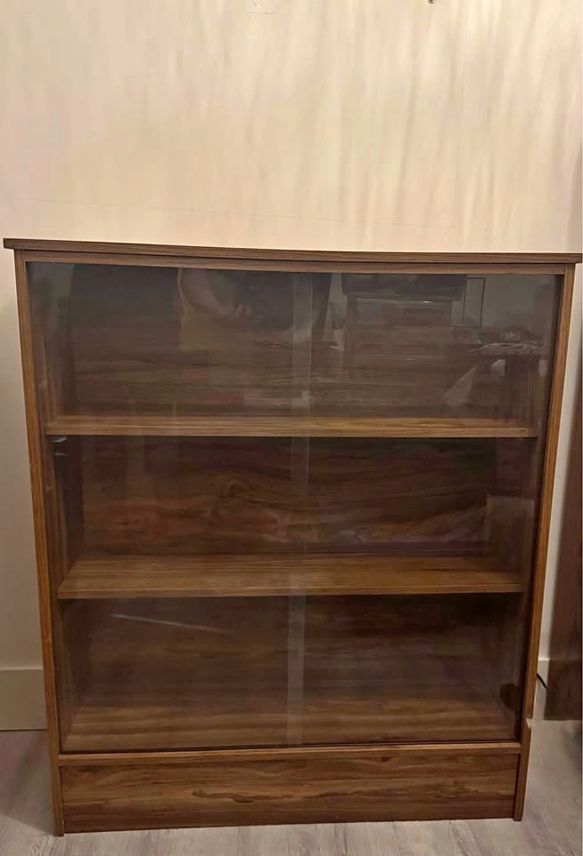 10An MCM tone display cabinet with shelves and sliding glass front panes in excellent working condition. Slight flap on one corner as shown in picture. Available for pickup only in crescent heights and cash payment accepted. Dimensions are: Width: 36 inches Depth: 12 inches Height: 41.5 inches One of my favourite pieces, but am moving and can't take with me, enjoy!