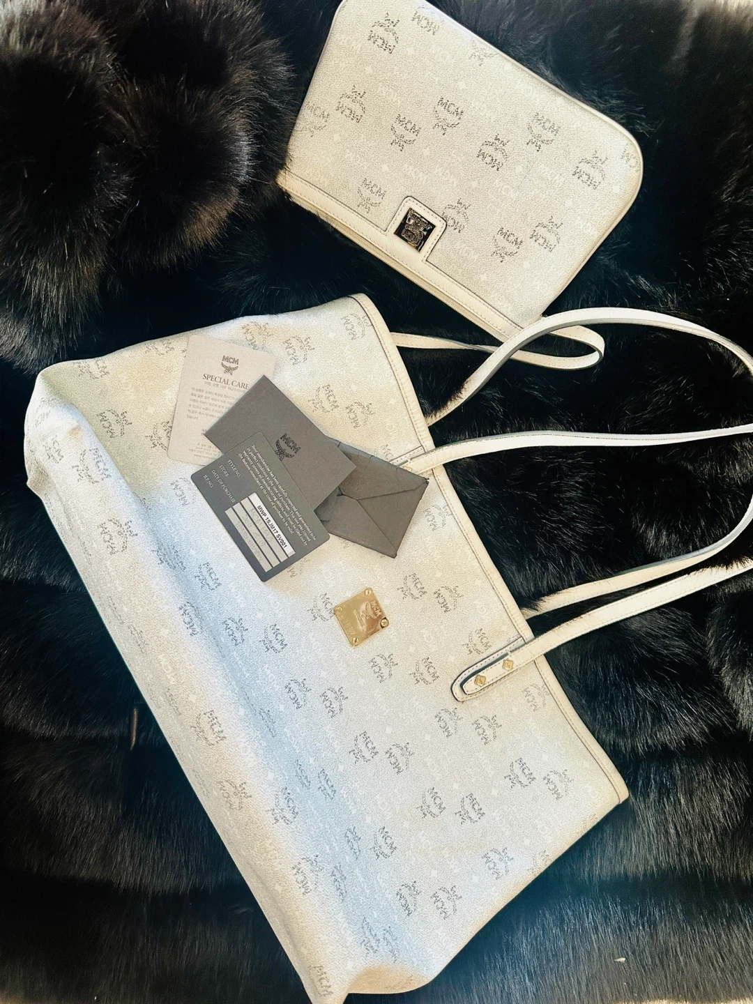MCM White Tote Bag & Clutch Set with authenticity card