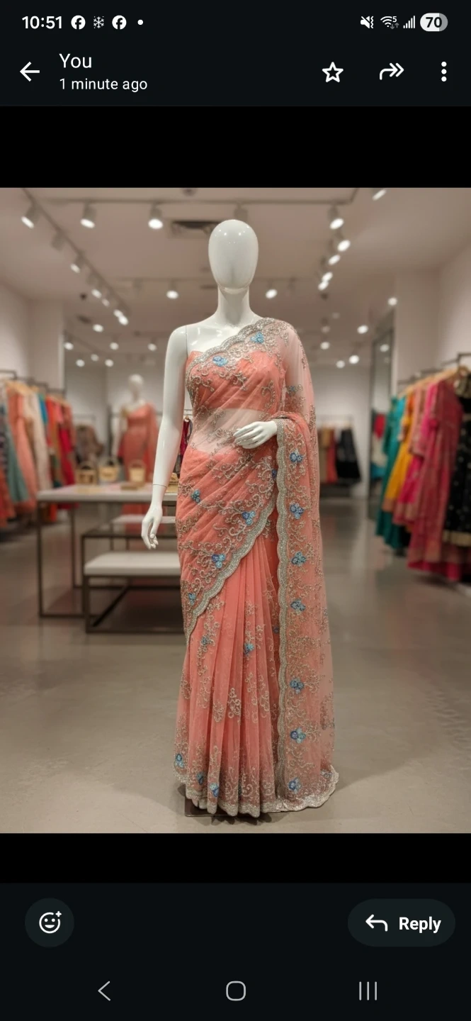 Beautiful peach saree with intricate embroidery and beadwork. Comes with a matching embroidered blouse. Perfect for weddings and parties (Brand New)