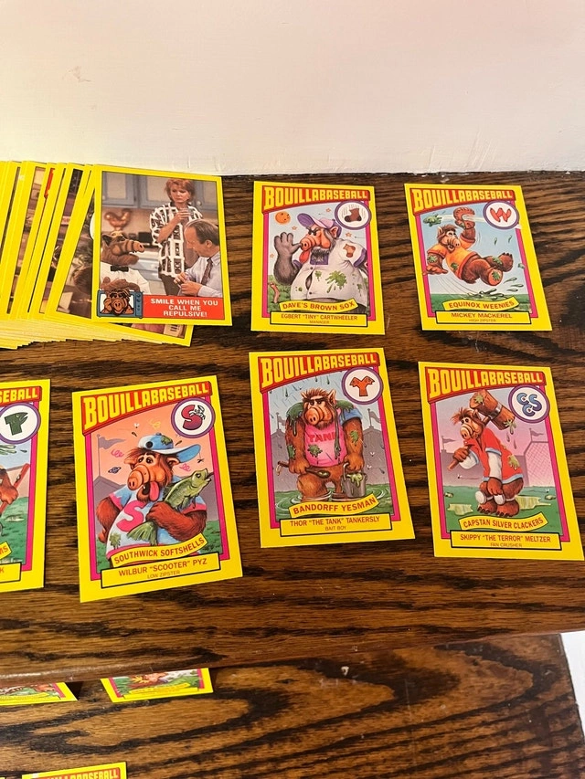 Hey there, card collectors! I'm parting ways with my vintage collection of 1988 Topps Bouilla Baseball cards featuring the hilarious ALF. These showcase the wacky designs and characters from the popular TV show. They're a great addition to any collection or a fun nostalgic trip. If you're keen on owning a piece of 80s memorabilia, these cards are just the ticket. Check out my other listings for more cool stuff!