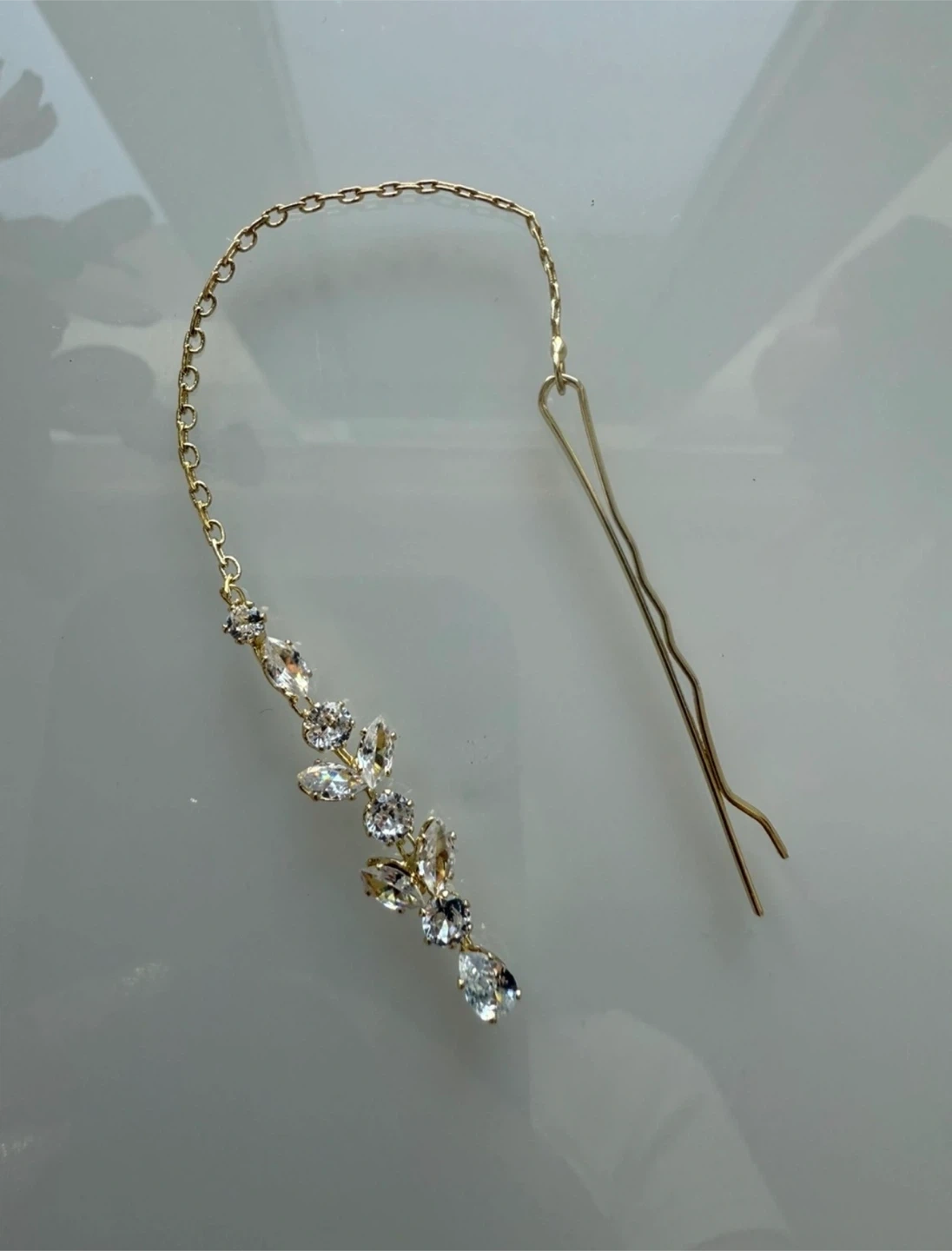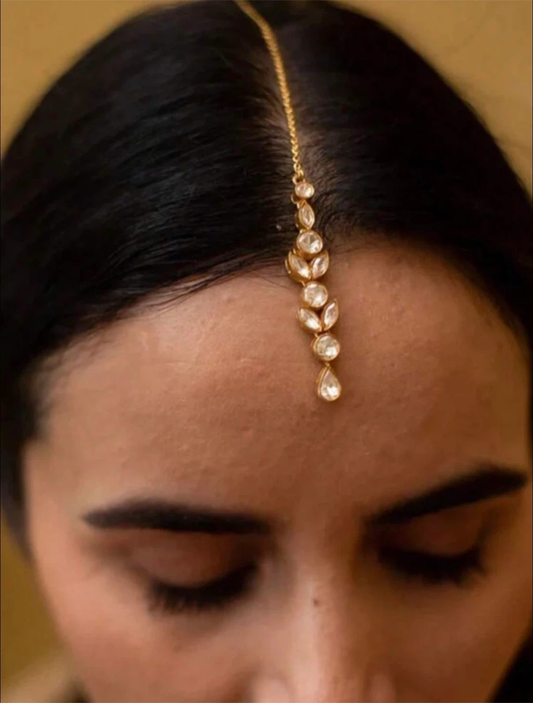This is a beautiful hair accessory, a tikka headpiece. It features a delicate chain and decorative stones. Perfect for adding a touch of elegance to any hairstyle