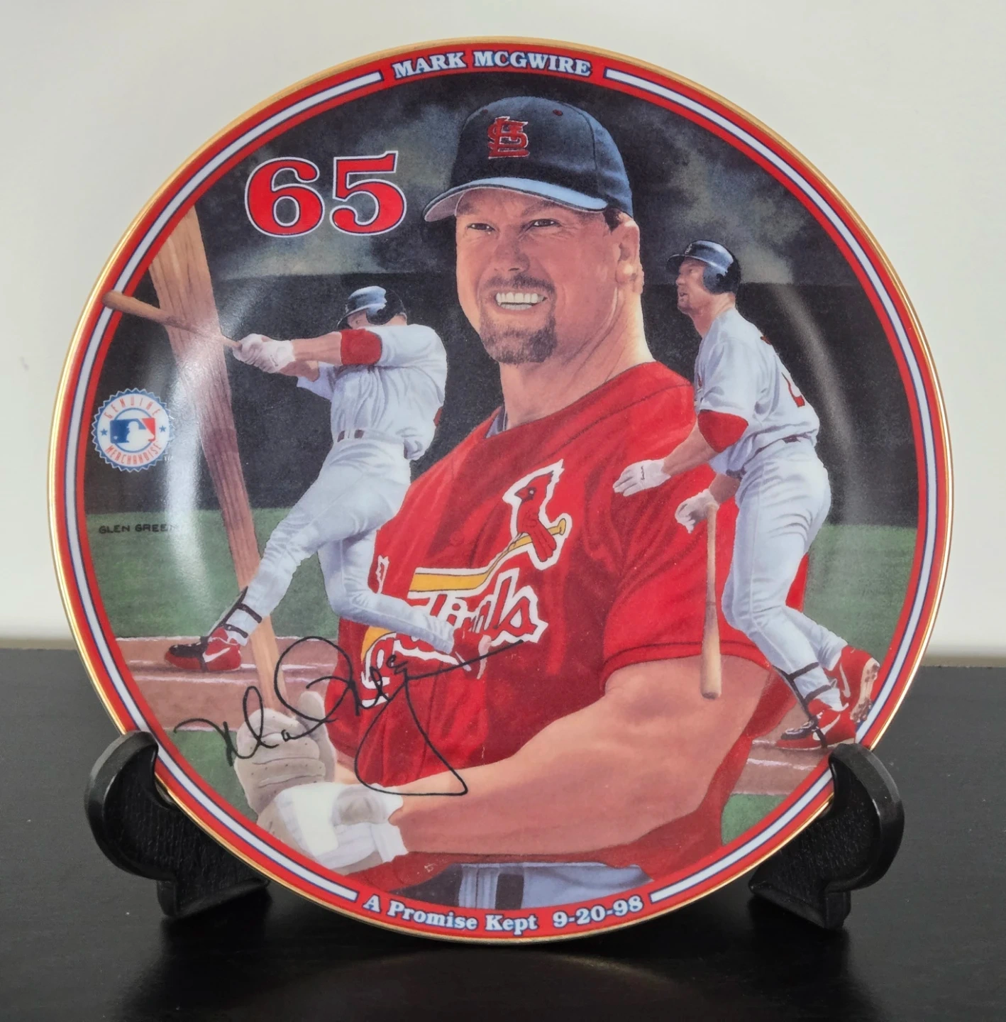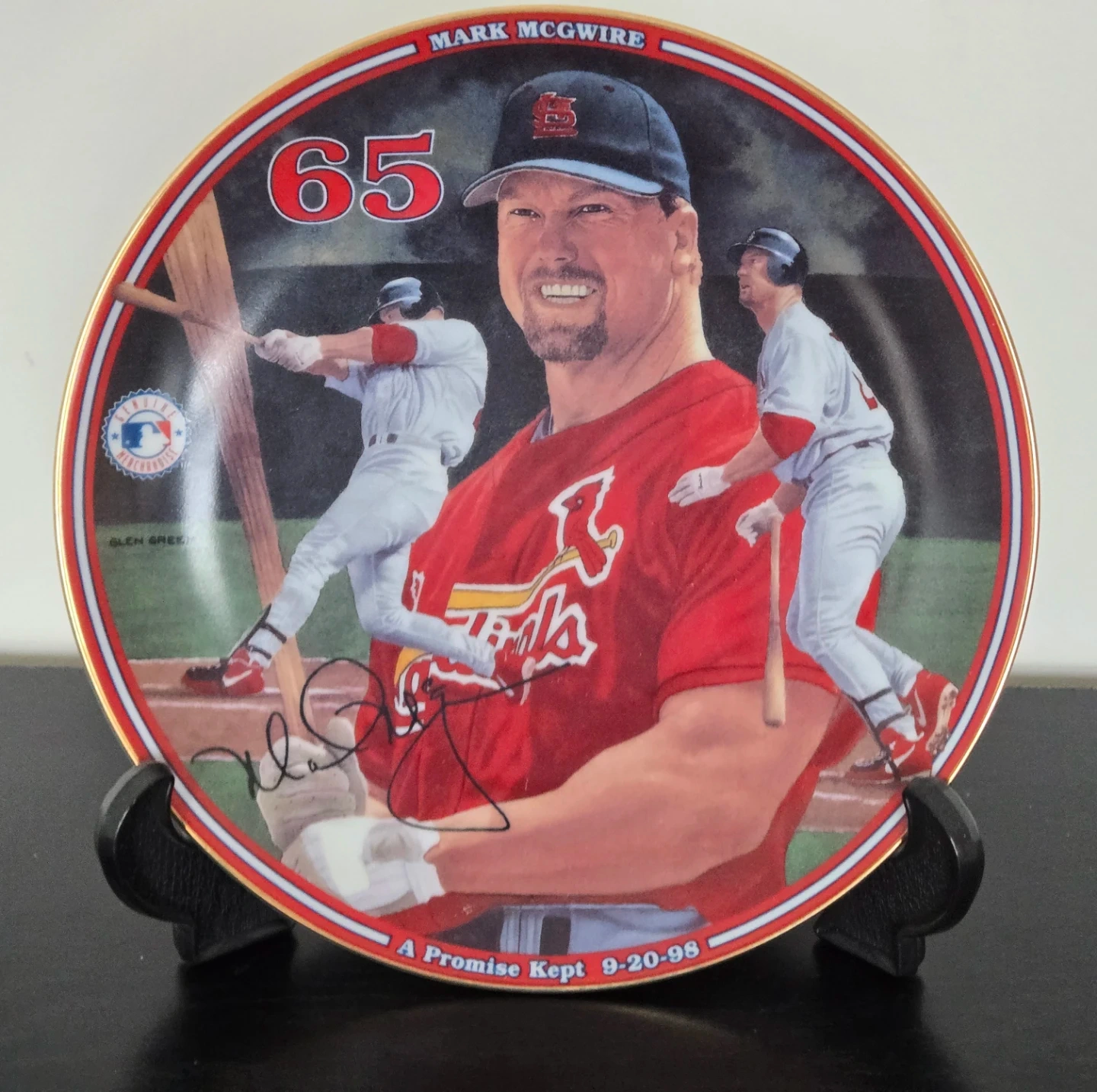This is the twelfth issue in the Mark McGwire: Home Run Hero collection. It's produced on hard-fire porcelain and is limited to a maximum of 95 firing days. The plate features "A Promise Kept" with the date 9-20-98. It's officially licensed by Major League Baseball.