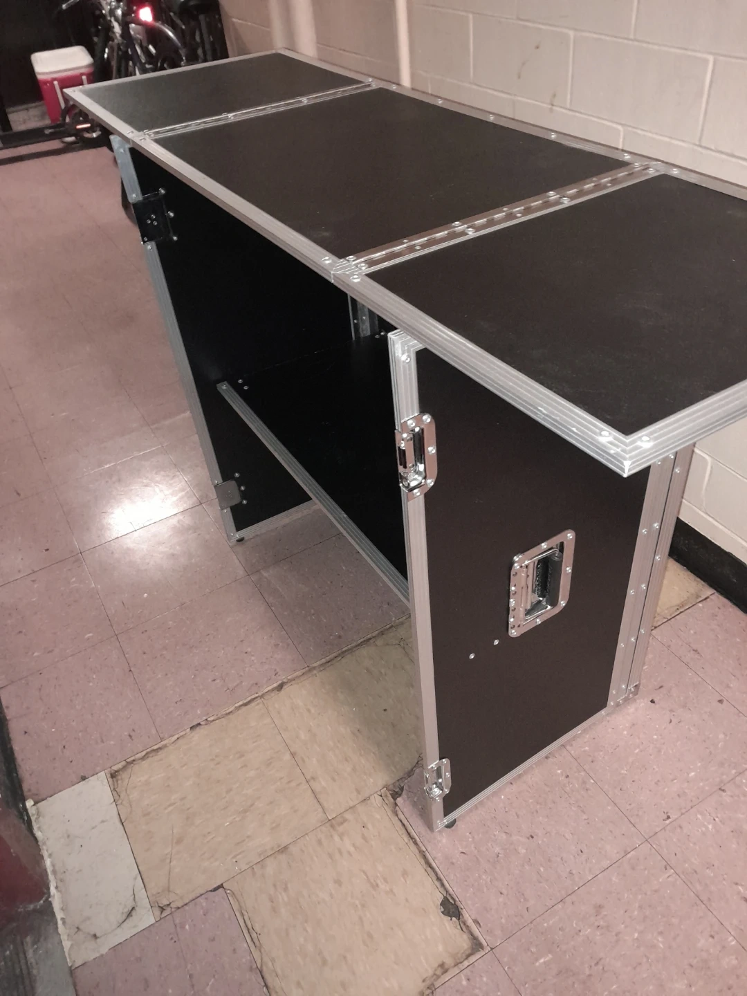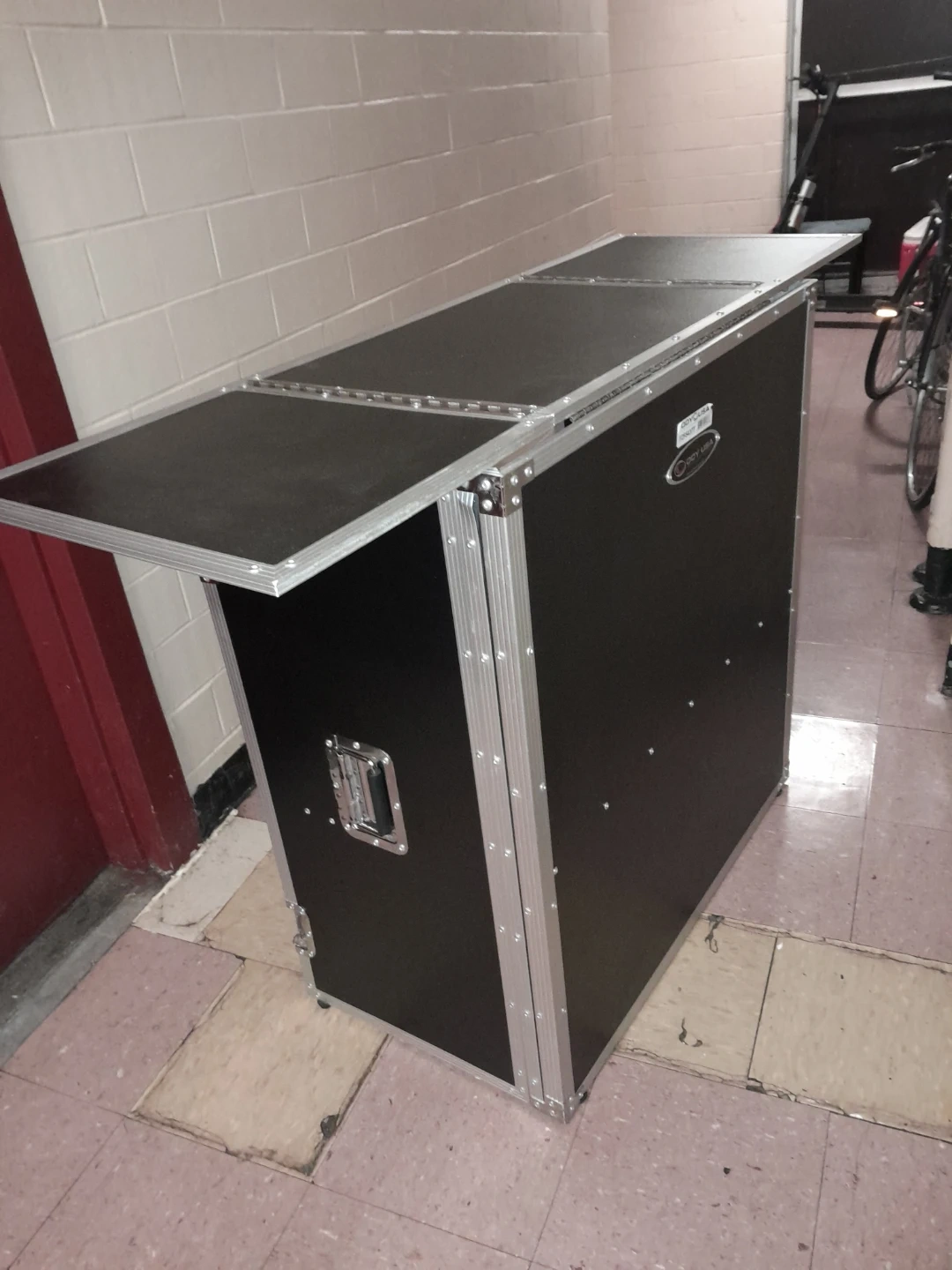 This pre-owned and carefullly used Odyssey flight case DJ stand is black with silver metal trim. It features fold-out tabletop sections and interior shelving. Pick up in Dumbo Brooklyn ,because of the sites location capability ,I wasn't able to mark the pick up on the map since I'm located in staten Island and the item is at my other residence in brooklyn,so the system can only use map for you current location and does not allow to bypass to indicate actual locatik of the item,im sure this bug will be corrected soon, I'm on it .๐