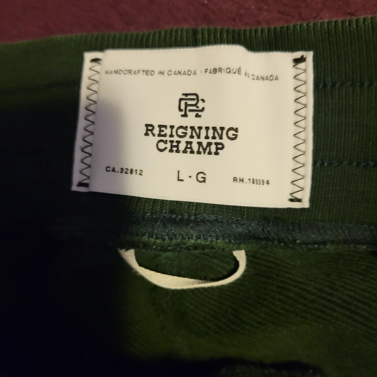 Green sweatpants from Reigning Champ. Made in Canada. Size L