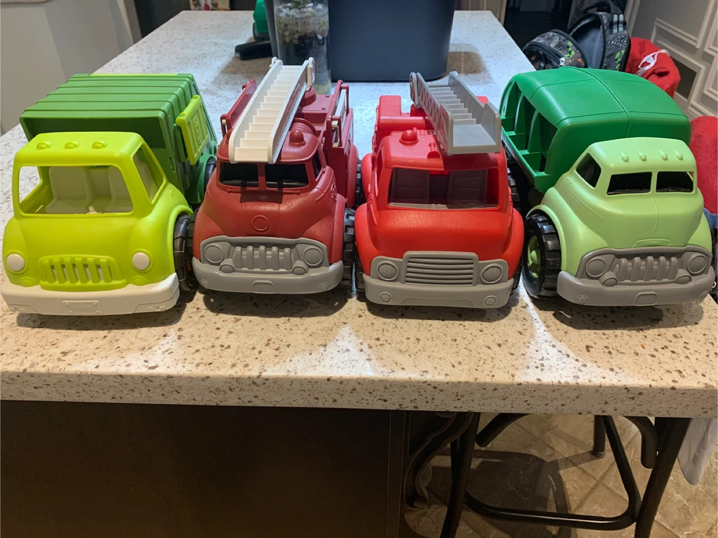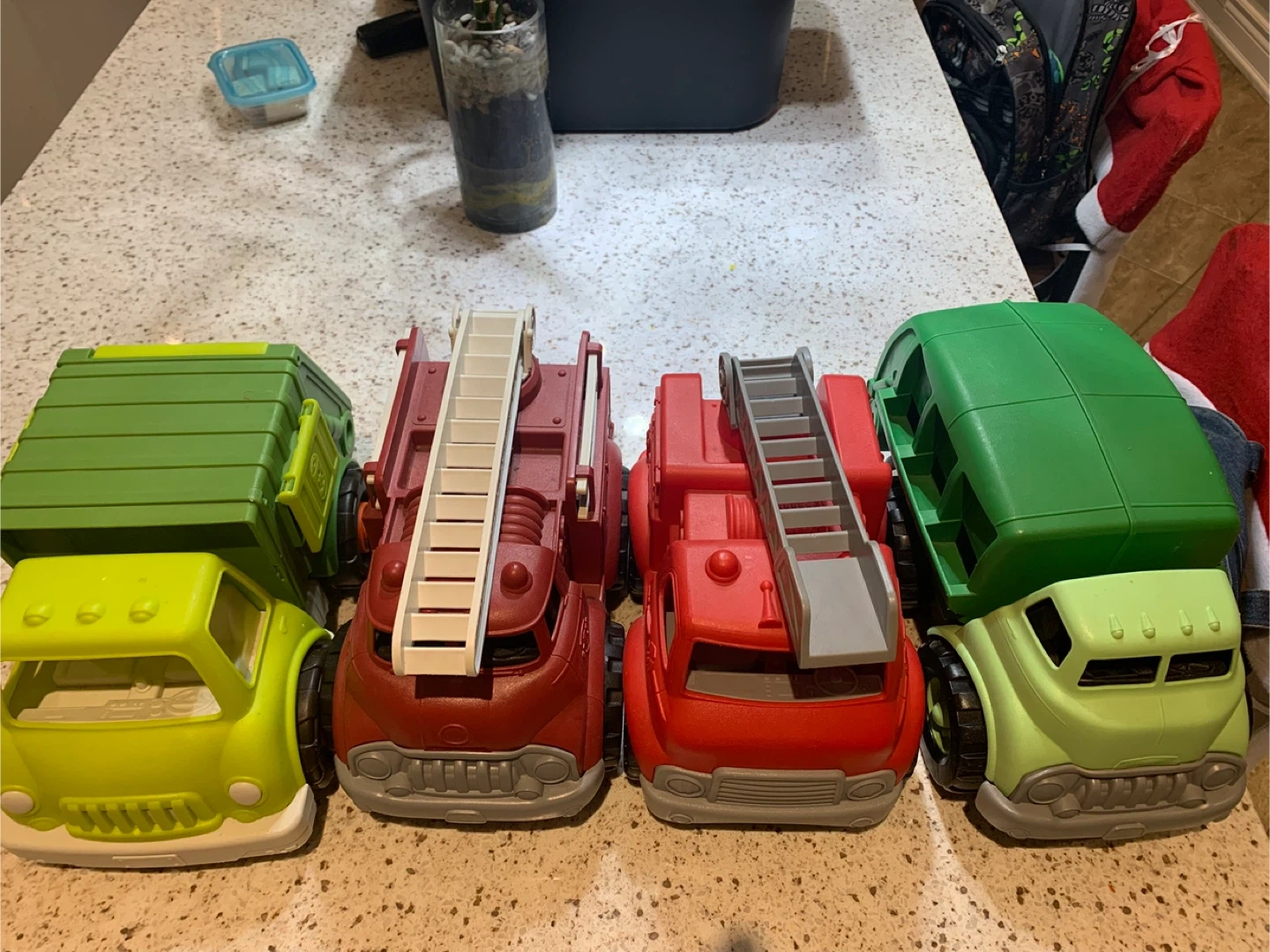 Selling a set of 4 Green Toys trucks! Includes a fire truck and a garbage truck. These are great for kids and are made from recycled materials. They're in great shape and ready for a new home! Will do $25 for the lot
