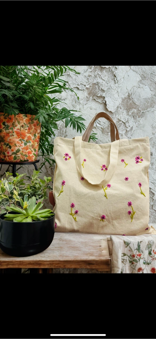 ๐ธ Handmade Embroidered Tote Bag ๐ฟ